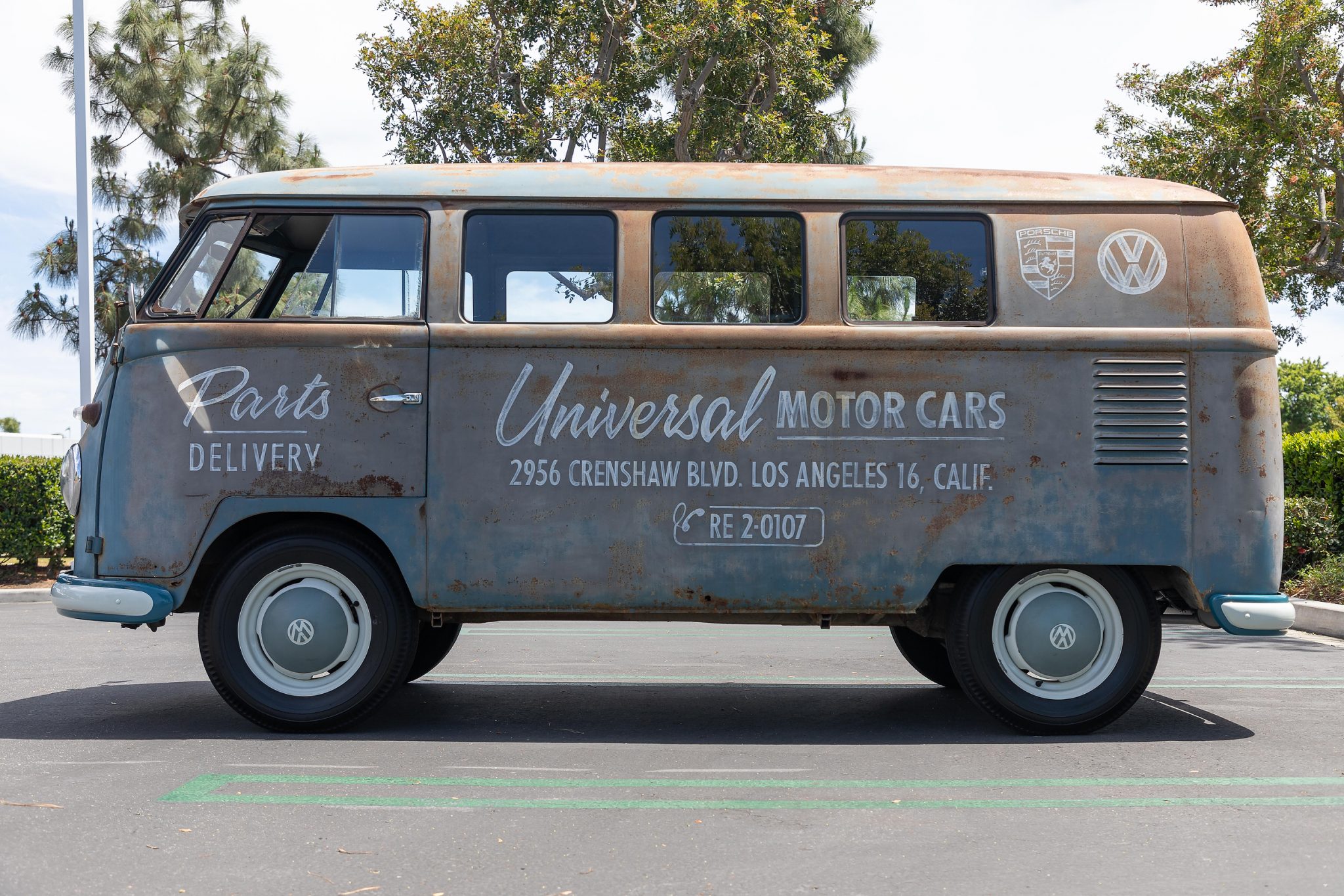 White-painted 15” steel wheels were installed under current ownership along with pale blue VW-branded hubcaps and Firestone Deluxe Champion tires. The front and rear bumpers were also replaced, along with the VW nose emblem. A California black license plate is mounted out back and surrounded by a Universal Motor Cars frame. The four-wheel drum brake system was overhauled following the selling dealer’s acquisition.