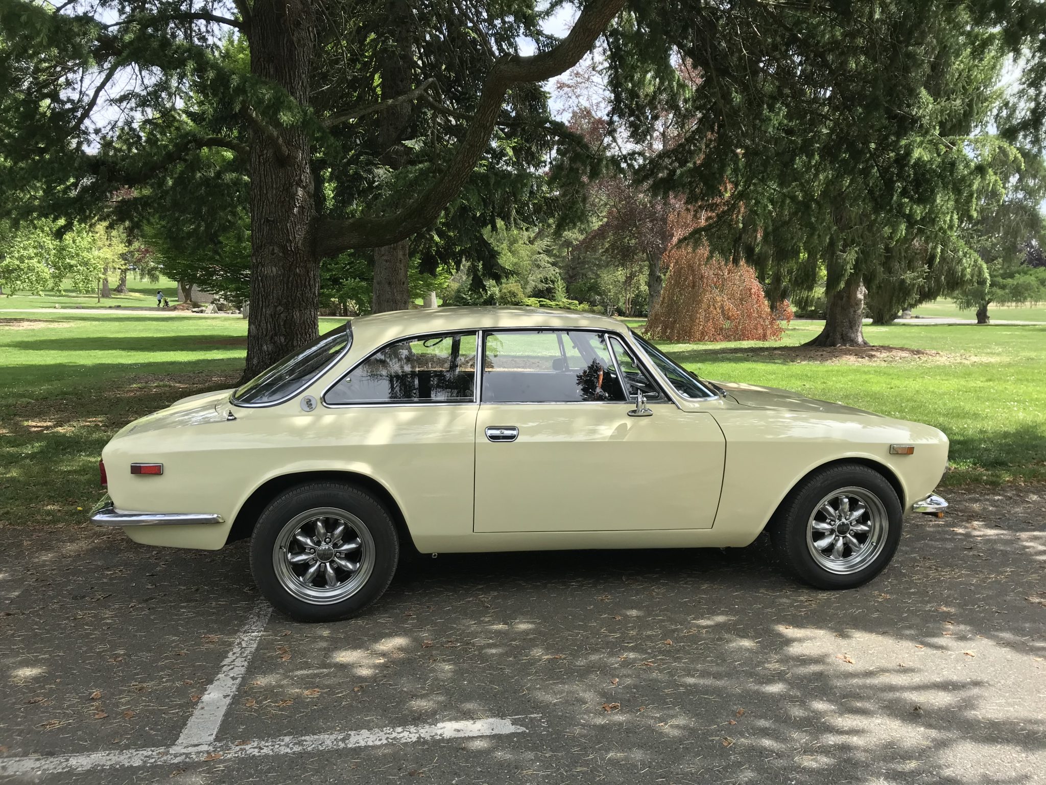 Panasport-style 15″ wheels have Vick Autosports center caps and are mounted with 195/60 Continental ControlContact Tour A/S tires. Recent service is said to have included a brake fluid flush, installing polyurethane suspension bushings, and replacing the upper caster joints and bump stops. The spare wheel and tire are missing, and the seller notes that the left-front wheel occasionally contacts the fender during left turns.