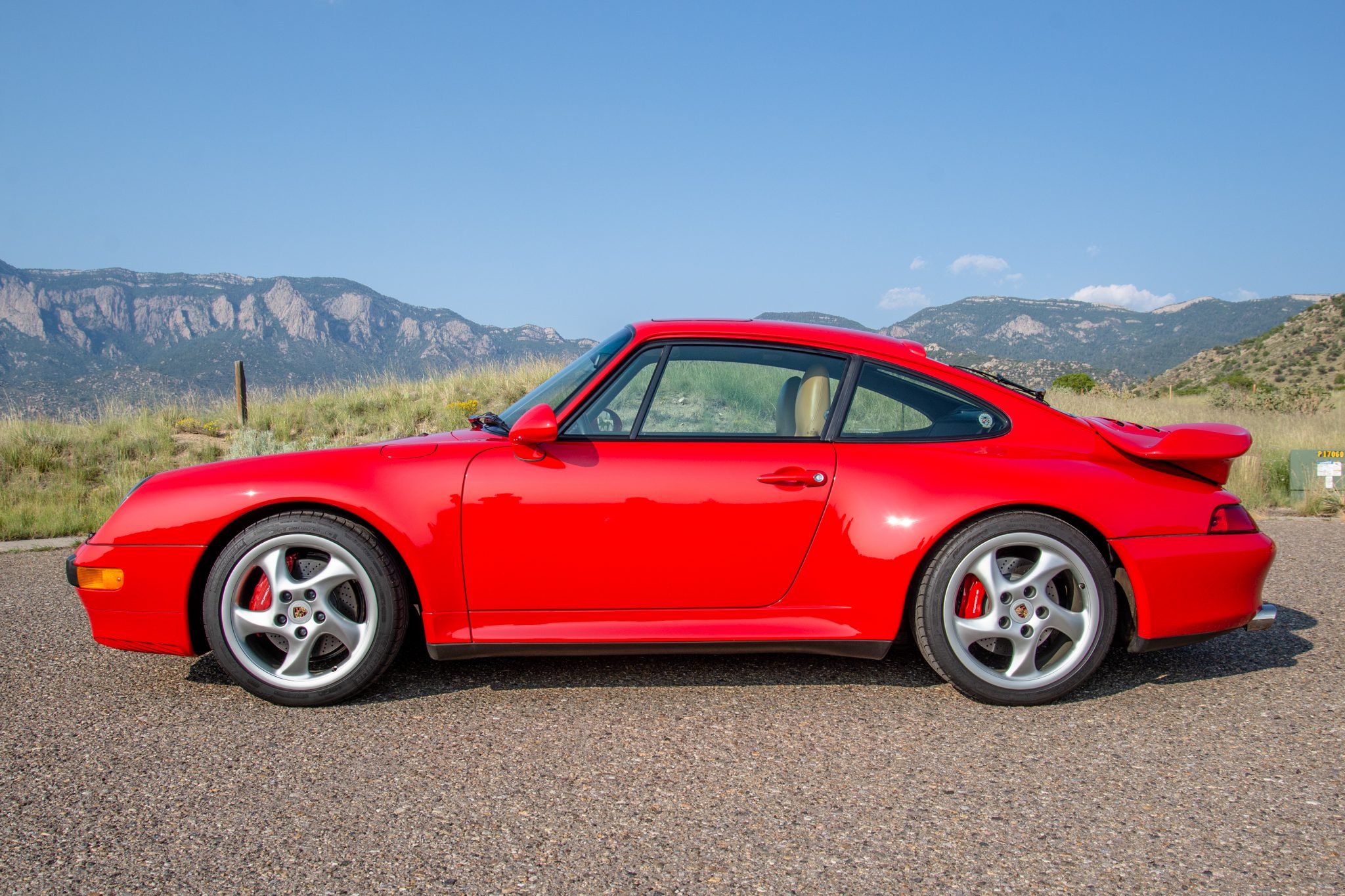 Factory 18″ Turbo Twist wheels are wrapped with Michelin Pilot Sport N3 tires measuring 225/40 up front and 285/30 out back, which records indicate were mounted in August 2019. Stopping power is provided by red-painted calipers and cross-drilled rotors at all four corners. A thrust-angle alignment was performed in February 2021 by Mercedes-Benz Audi Porsche of Albuquerque, New Mexico.