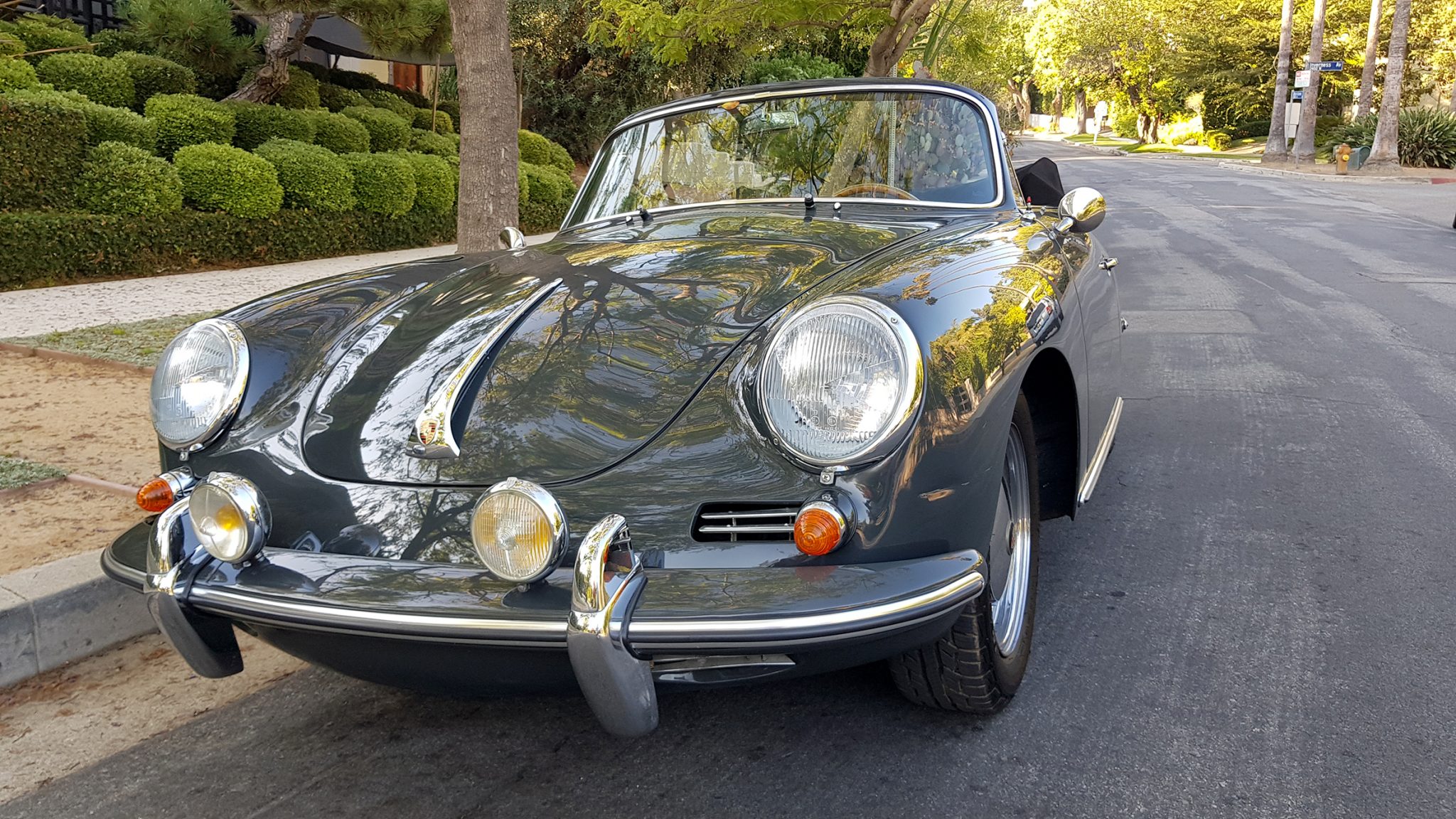 The 15″ chrome wheels wear Porsche-crest hubcaps and are mounted with 195/60 BFGoodrich Advantage T/A tires. A matching spare wheel with a Michelin X radial tire is fitted in the front trunk. The black soft top features a plastic rear window, and a matching boot is included in the sale. Braking is handled by discs at all four corners.