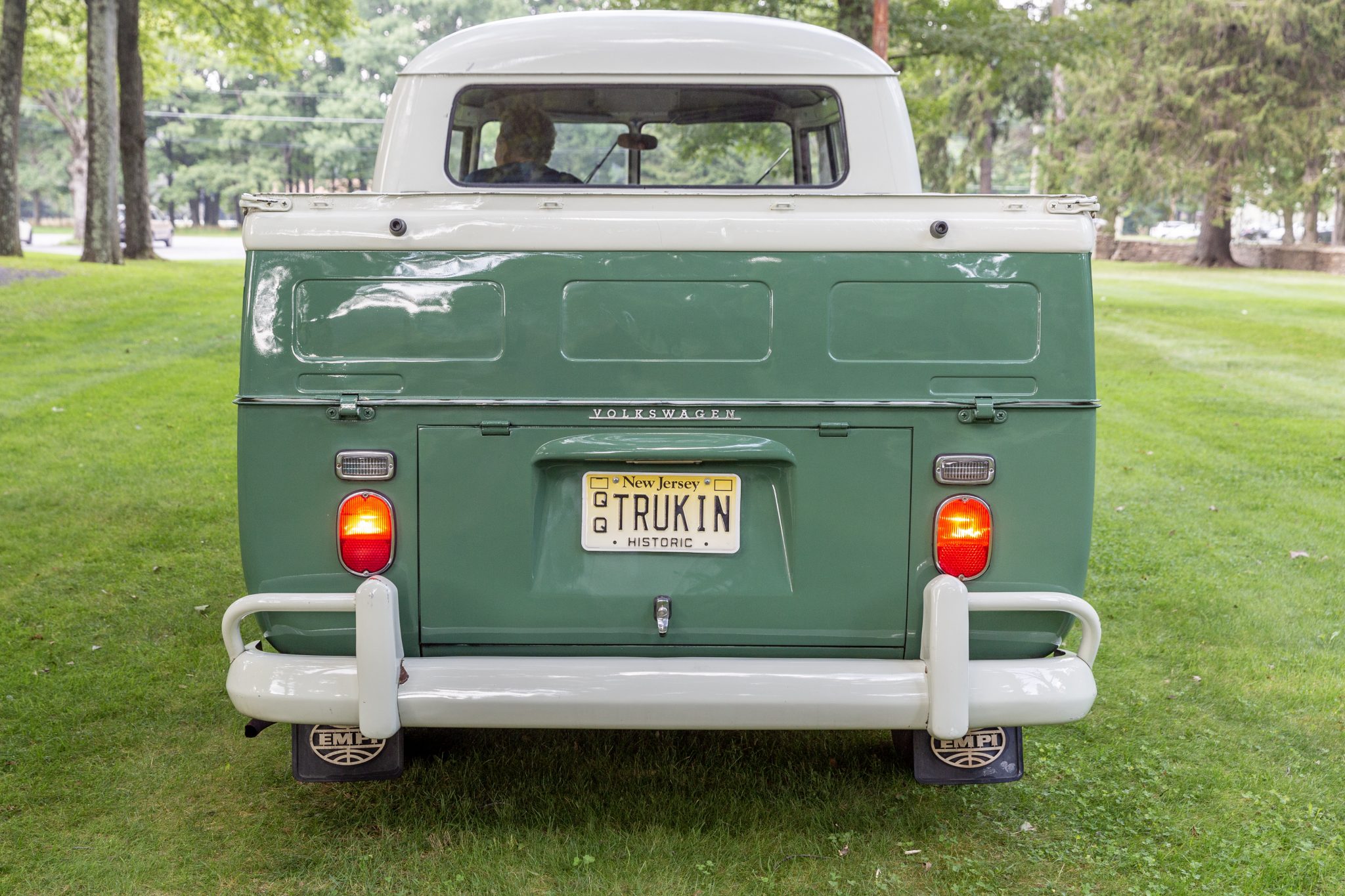 White-finished 14″ steel wheels are equipped with polished hubcaps and mounted with 195/75 Goodyear Wrangler AT tires. The brakes were serviced in December 2017 by Dawe’s Motorsport Development of Stroudsburg, Pennsylvania with a replacement master cylinder, front drums, rear brake cylinders, and braided lines. Independent rear suspension from a Super Beetle was added during prior ownership. Lowered front spindles have also been installed and the rear torsion tube has been reinforced with steel plates.