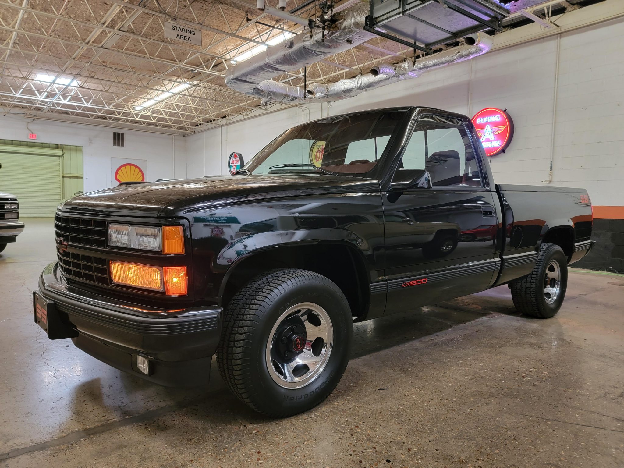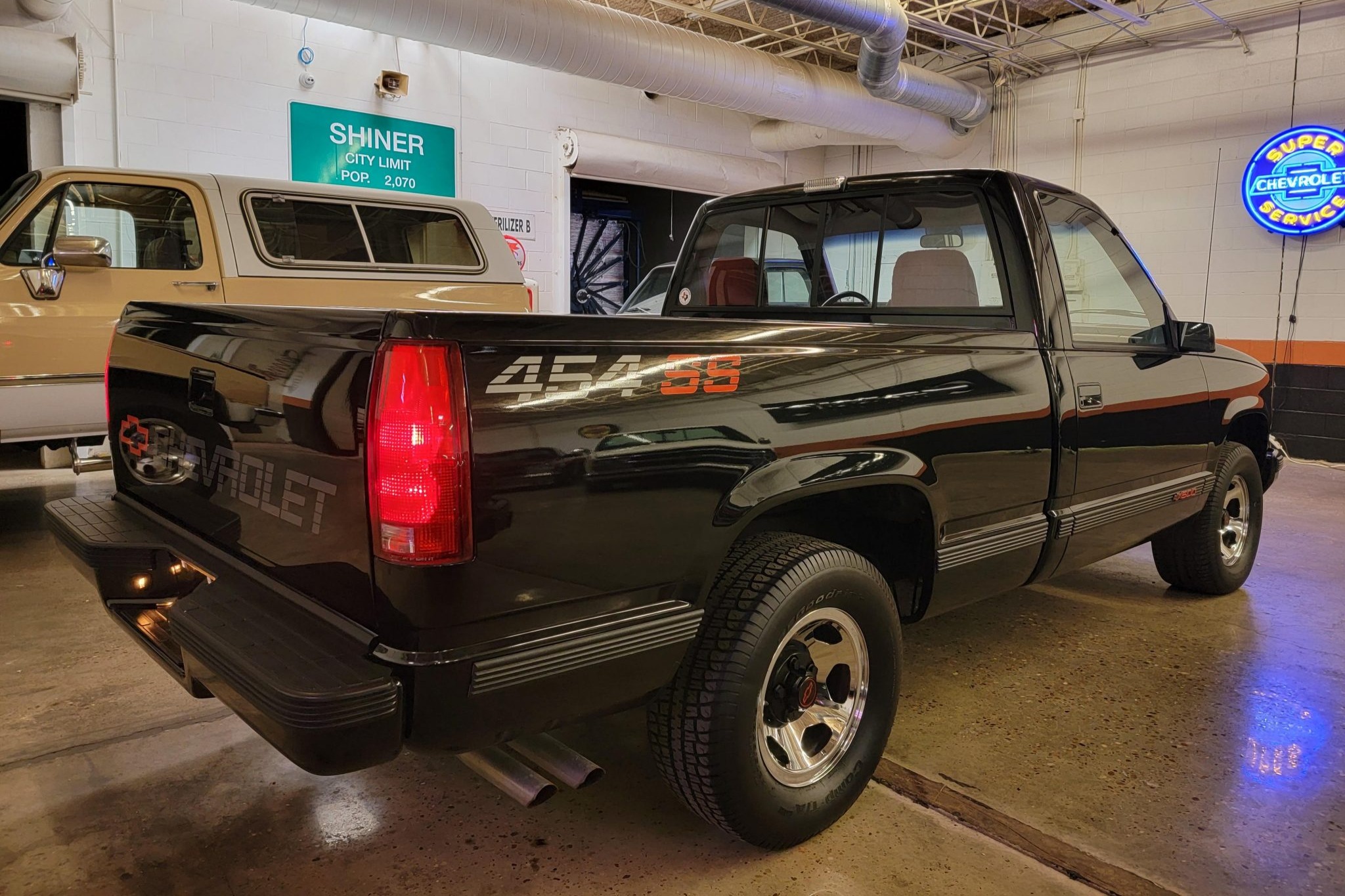 Chrome-finished 15″ wheels with Chevrolet center caps are fitted with 270/65 BFGoodrich Comp T/A tires. The 454 SS came equipped from the factory with the Performance Handling Package including Bilstein shocks and a front stabilizer bar.