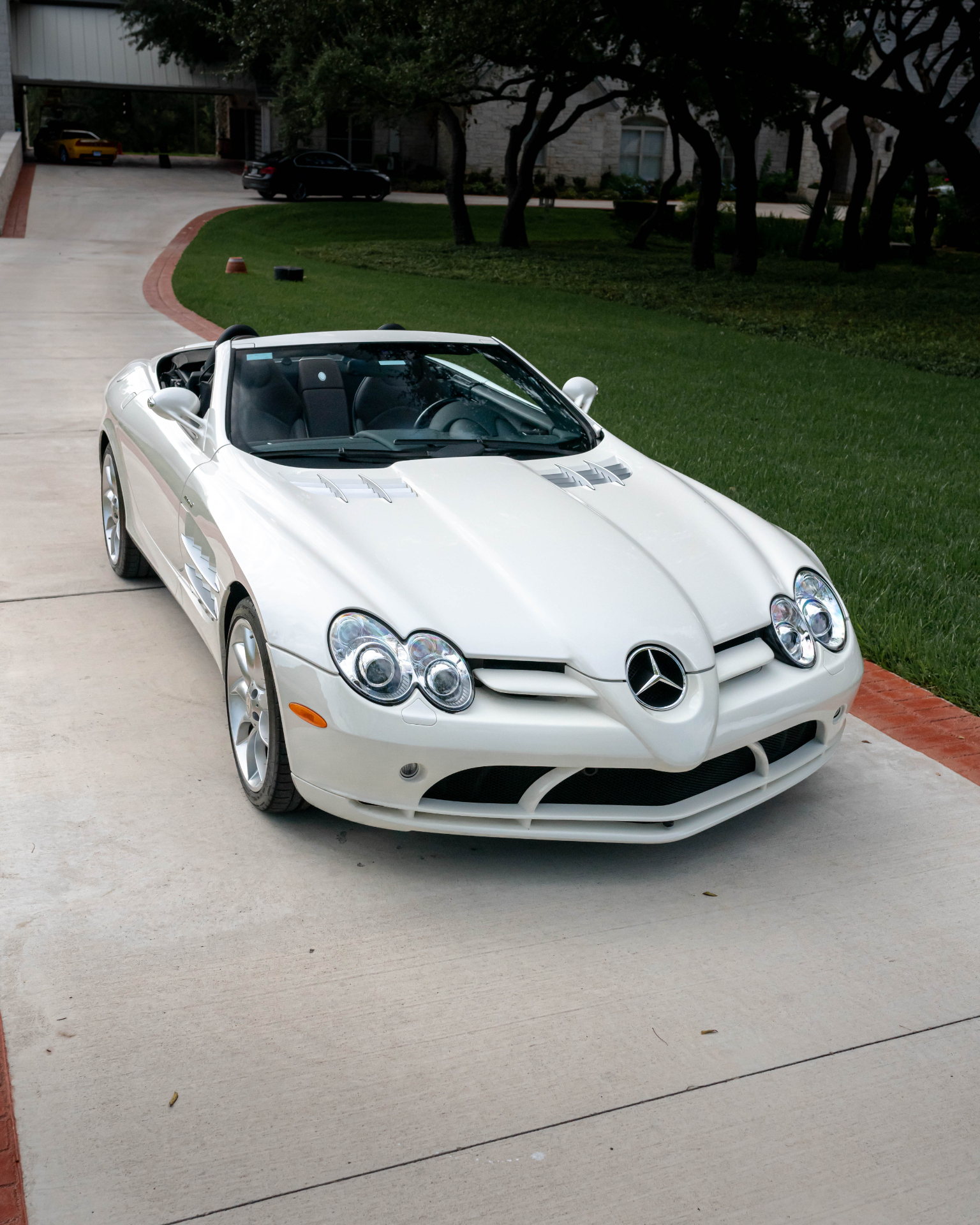 Turbine-style 19” wheels wear 255/35 front and 295/30 rear Michelin Pilot Super Sport tires. Braking equipment includes silver-painted calipers over carbon-ceramic rotors, Sensotronic Brake Control (SBC), and an automatic rear air brake. Fresh brake fluid was added in May 2021.