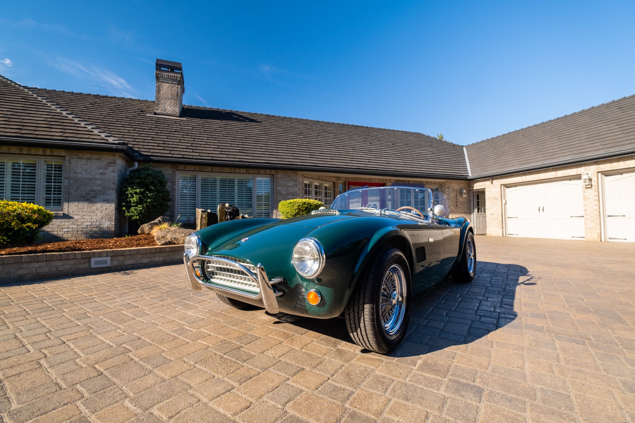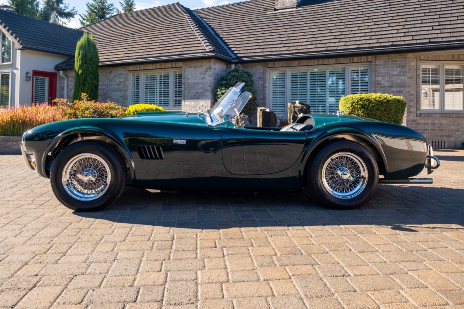 Chrome 15×6″ Dayton knock-off wire wheels wear 205/65 Dunlop Signature II tires with 2013 and 2014 date codes. Braking is from Wilwood discs at all four corners. The front and rear suspension features adjustable transverse leaf springs, sway bars, and adjustable shocks.