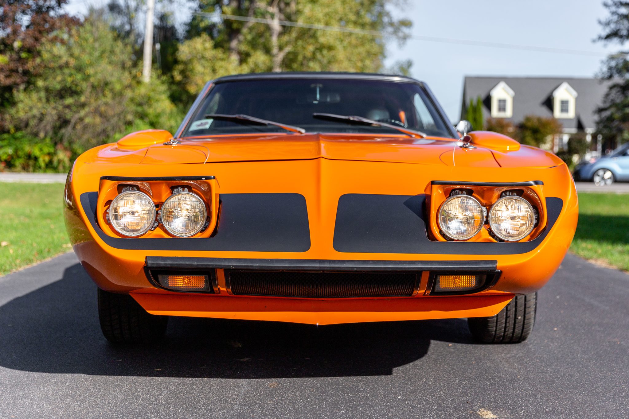 Gold-finished 15″ Aero Race Wheels are mounted with 235/60 Cooper Cobra Radial GT white-letter tires. Modifications include Wilwood brake calipers front and rear, cross-drilled front rotors, rack-and-pinion steering, front coilovers, and rear traction bars.