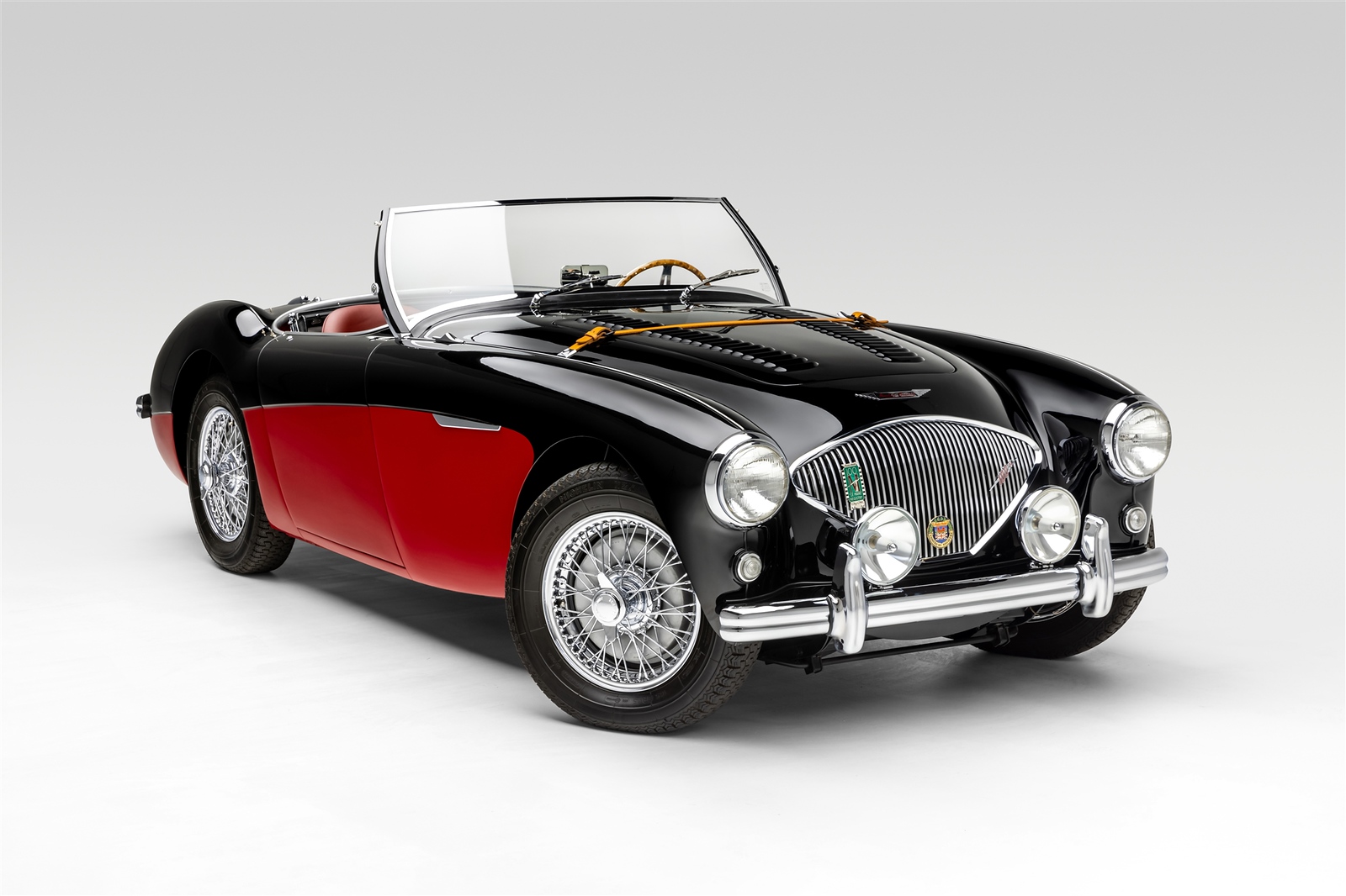 Chrome 15″ wire wheels with knock-off center caps wear tubeless 165 Michelin tires. Braking is handled by drums at all four corners. The steering box pinion seal was replaced in May 2021.