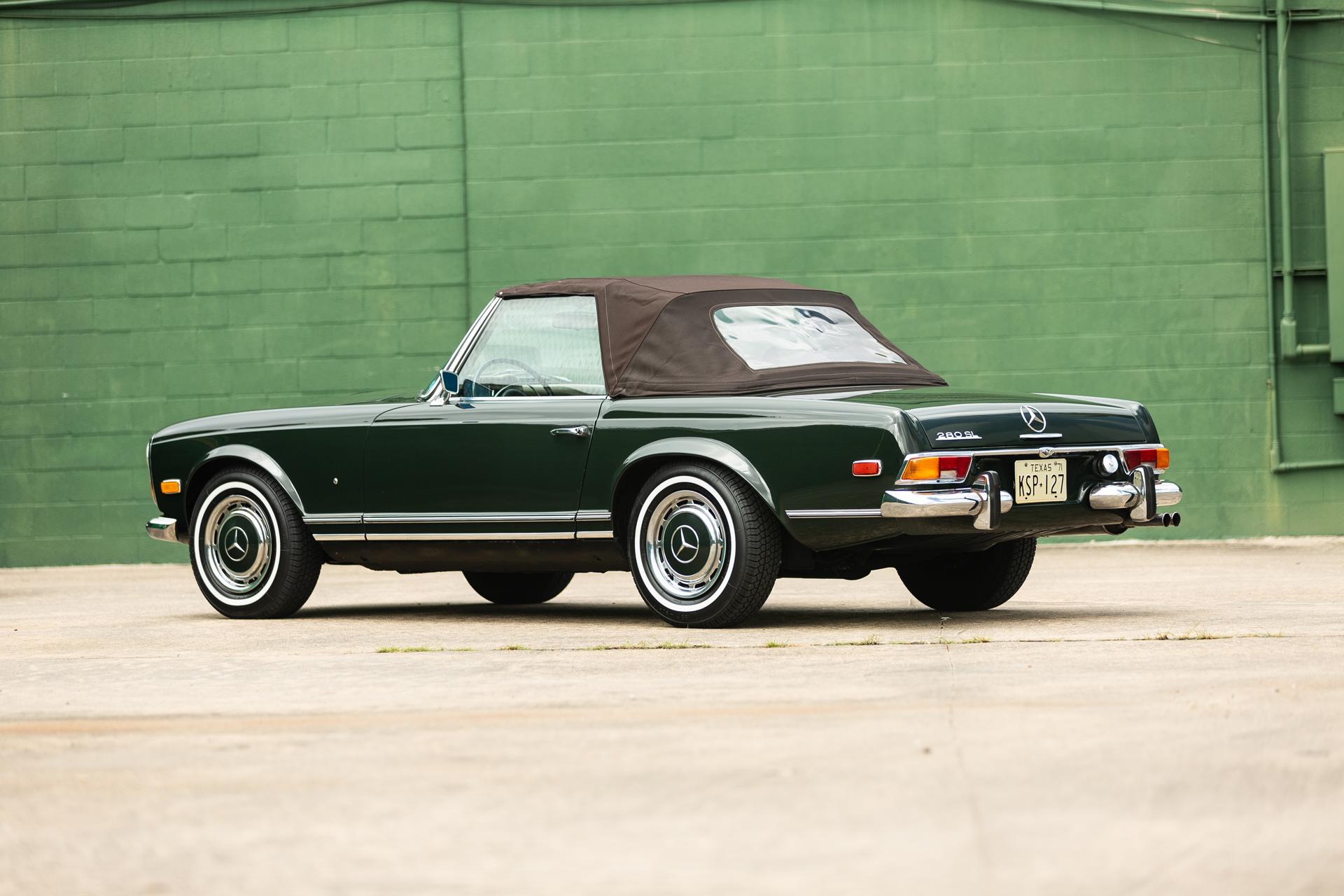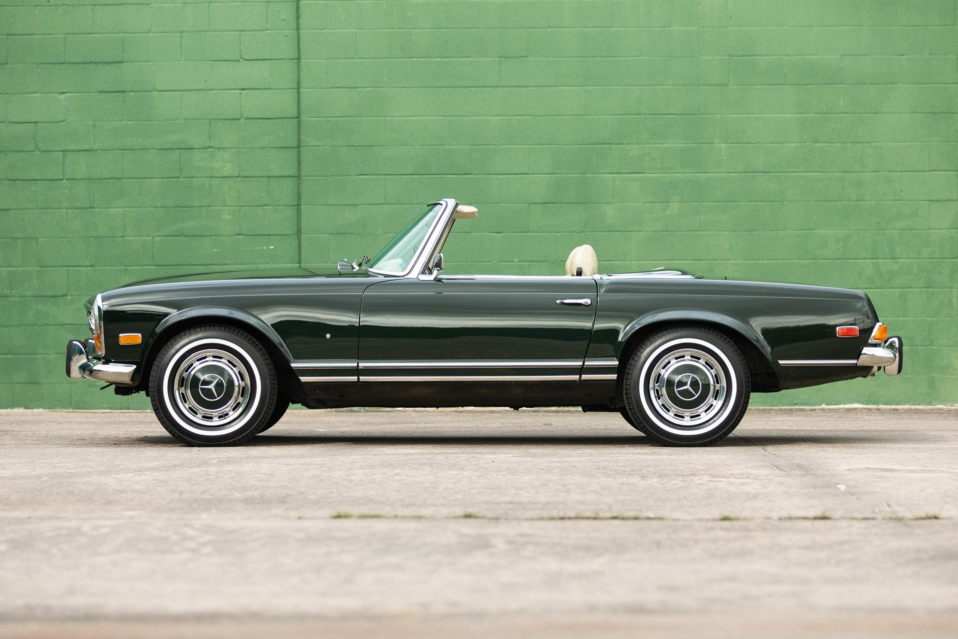Steel 14″ wheels wear chrome covers with body-color inserts and are mounted with 185R14 Michelin MXV whitewall tires showing 2021 date codes. Braking is handled by power-assisted discs at all four corners.