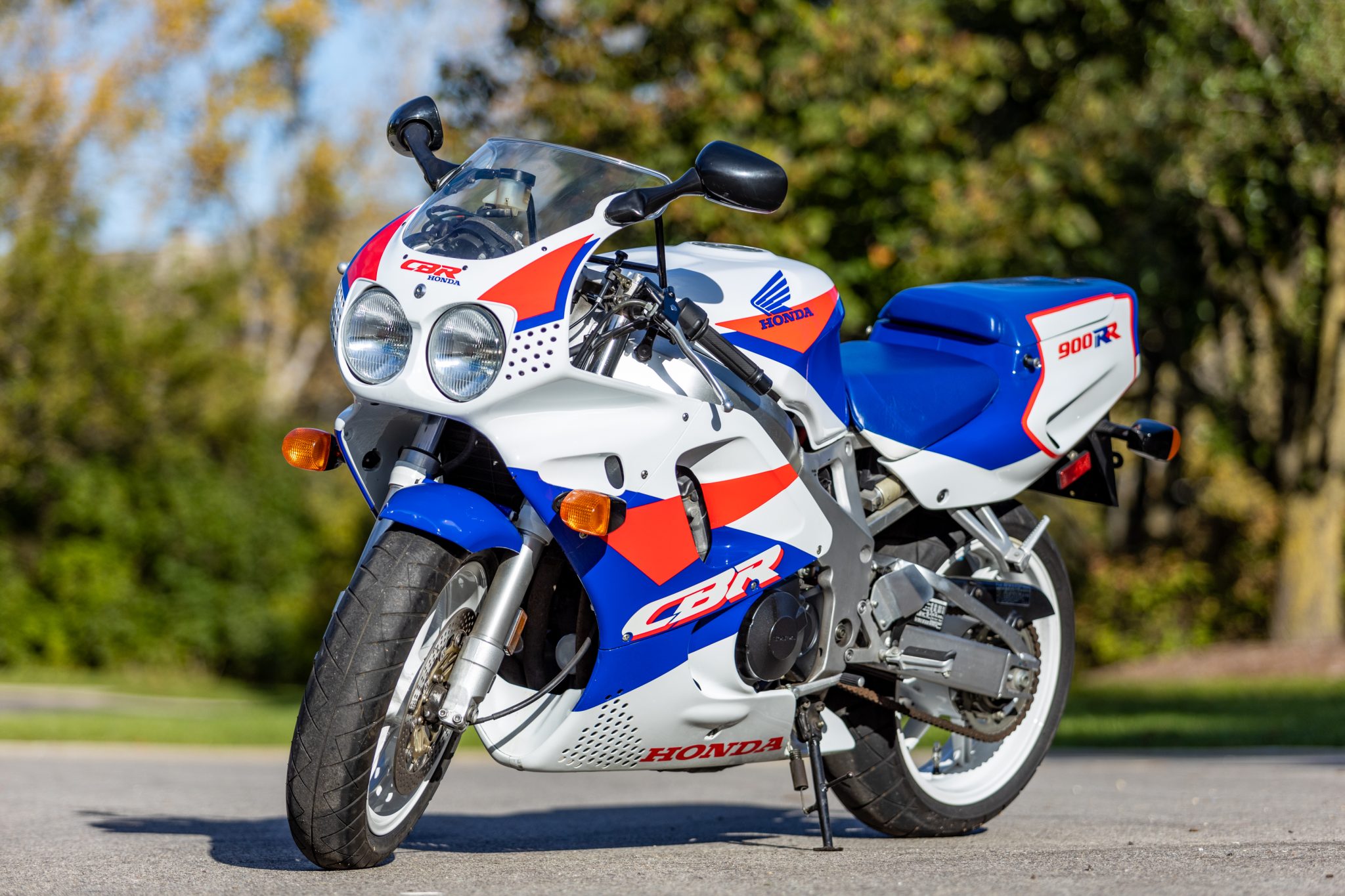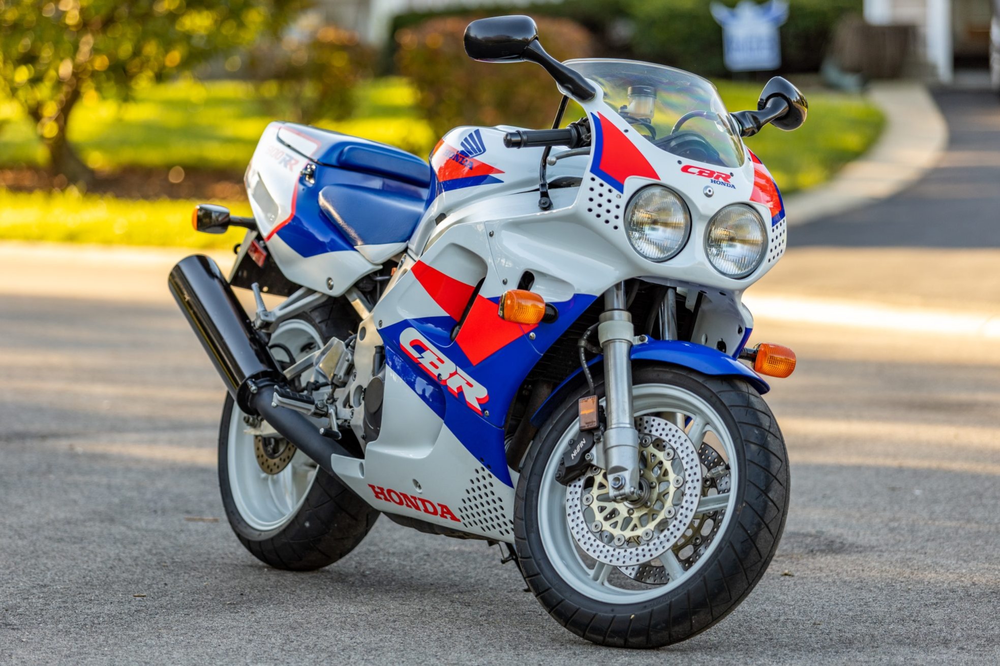 White cast alloy wheels measuring 16″ up front and 17″ out back wear Bridgestone Battlax BT-50 tires. Braking components include dual floating 296mm drilled discs and four-piston Nissin calipers up front and a single 220mm drilled disc and single-piston caliper out back. Adjustable Showa suspension consists of a 45mm cartridge fork as well as a remote-reservoir monoshock with Pro Link linkage connected to the braced aluminum double-sided swingarm.