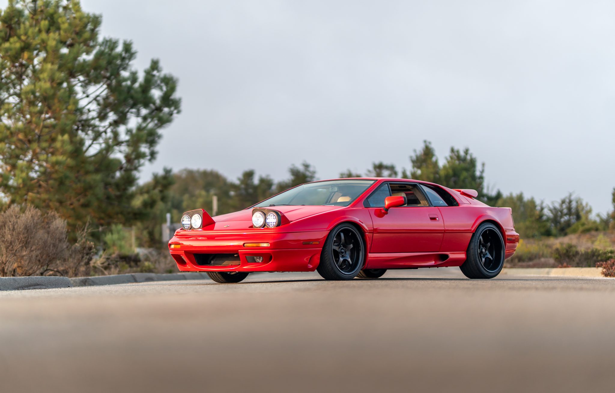 Aftermarket KMC Tracklite wheels measure 17×8.5″ up front and 18×10″ out back and are mounted with Yokohama S Drive tires sized 215/40 and 265/35 respectively. The car has been fitted with a 332mm Alcon front brake kit, and the ABS system has been removed. The left front wheel was repaired and the shocks, springs, upper ball joints, and radius arm bushings were replaced in 2019. The removed factory wheels are included in the sale.