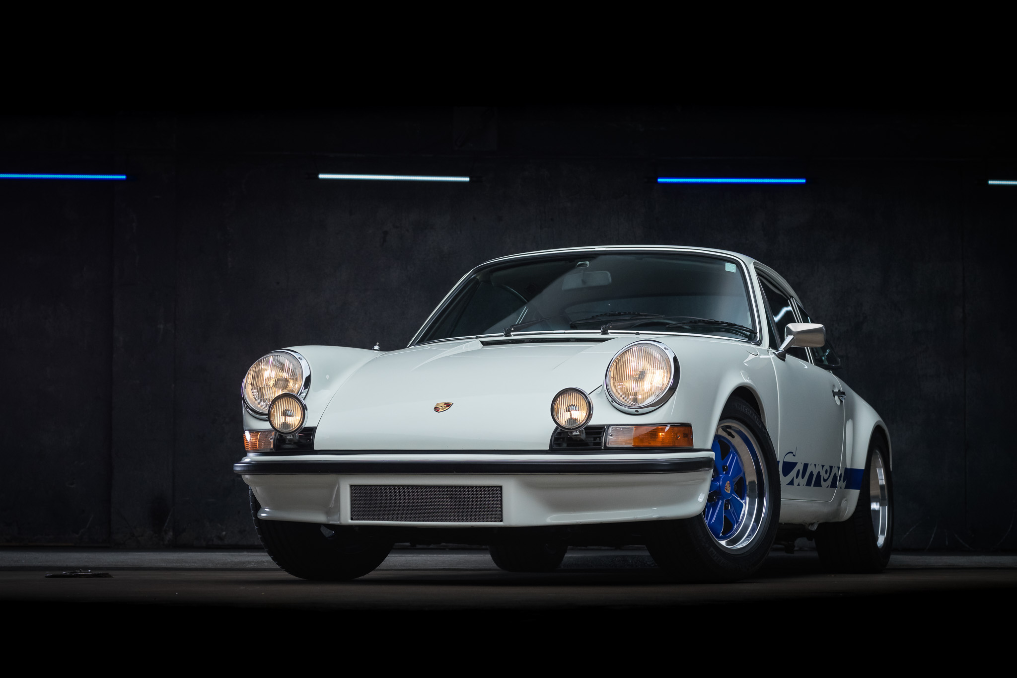 16″ Fuchs wheels were recently refinished with blue spokes, polished lips, and colored Porsche crests, and replacement Michelin Pilot Exalto tires measuring 205/55 front and 225/50 rear were also installed. The suspension has been modified with Elephant Racing coilovers, ball-jointed trailing arms, Tarett Engineering links, rear shock tower reinforcement plates, and a front strut brace. Braking is handled by four wheel calipers over cross-drilled and vented rotors. A brake fluid flush was recently carried out.