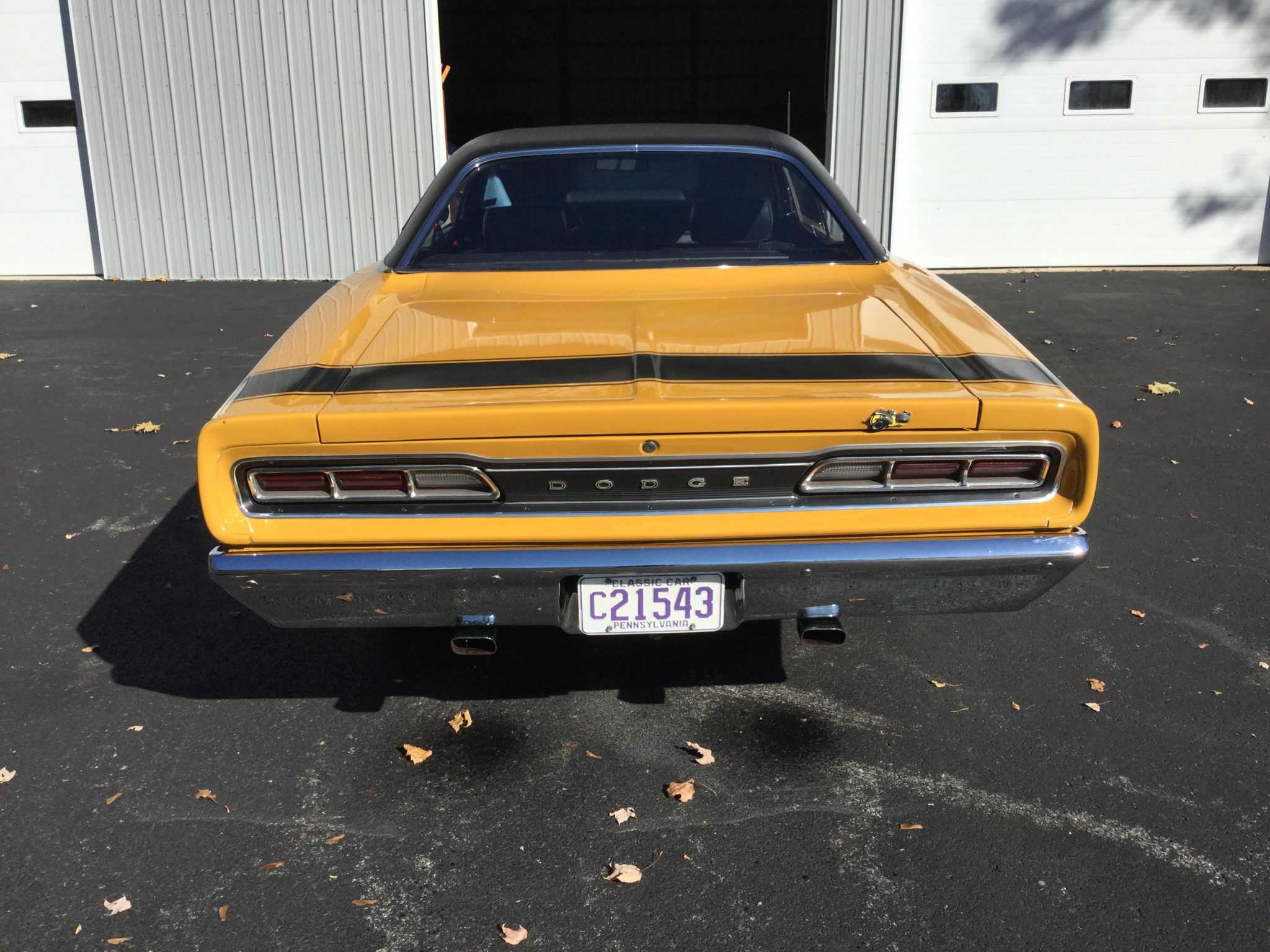 Black-painted 15″ steel wheels are mounted with Goodyear Custom Wide Polyglas tires. The car is equipped with drum brakes at each corner.