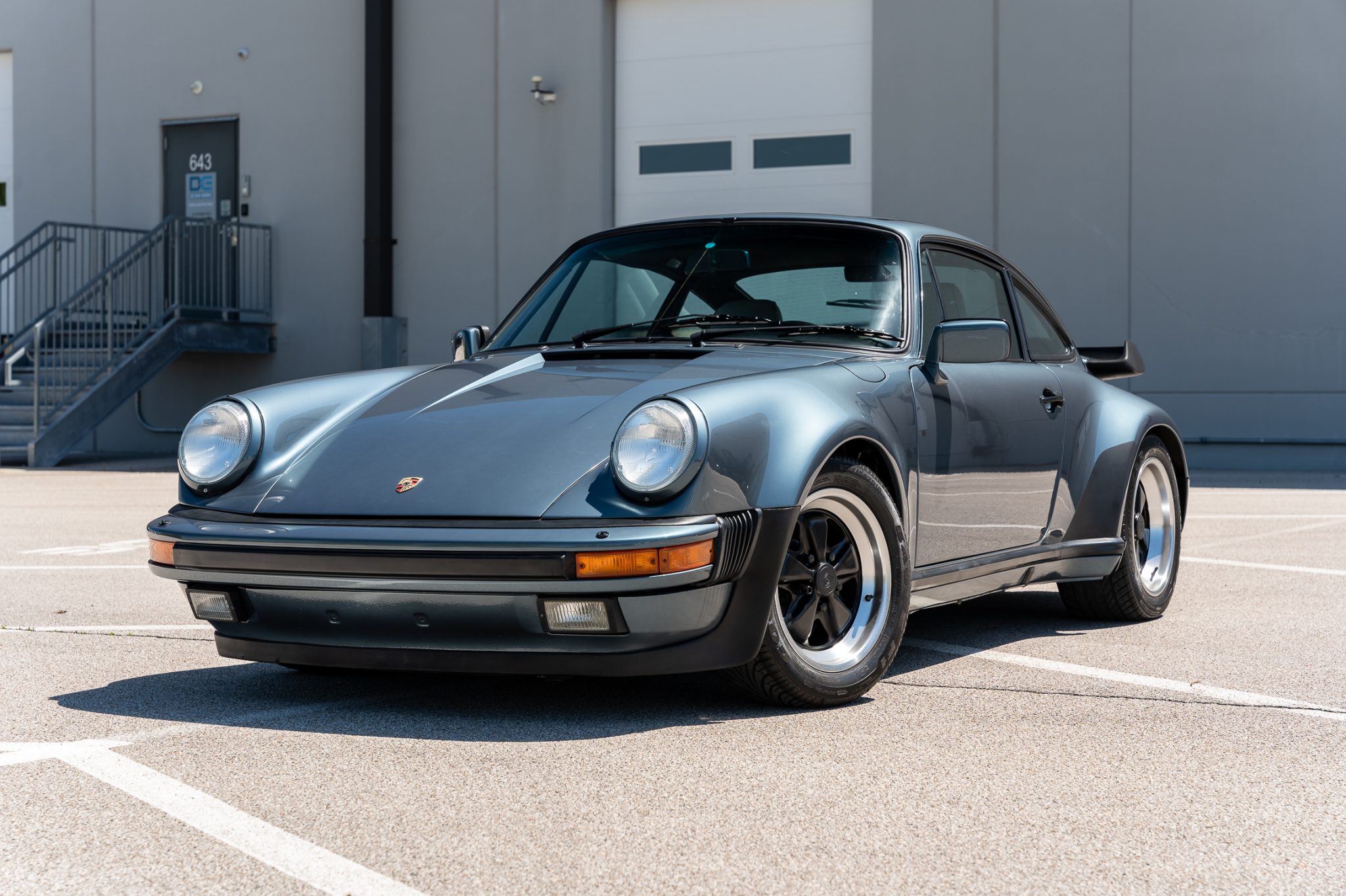 Black-finished 16″ Fuchs wheels are mounted with Goodyear Eagle F1 tires measuring 205/55 up front and 245/45 out back. Cross-drilled brake rotors and four-piston calipers with Porsche script came standard on the Turbo model.