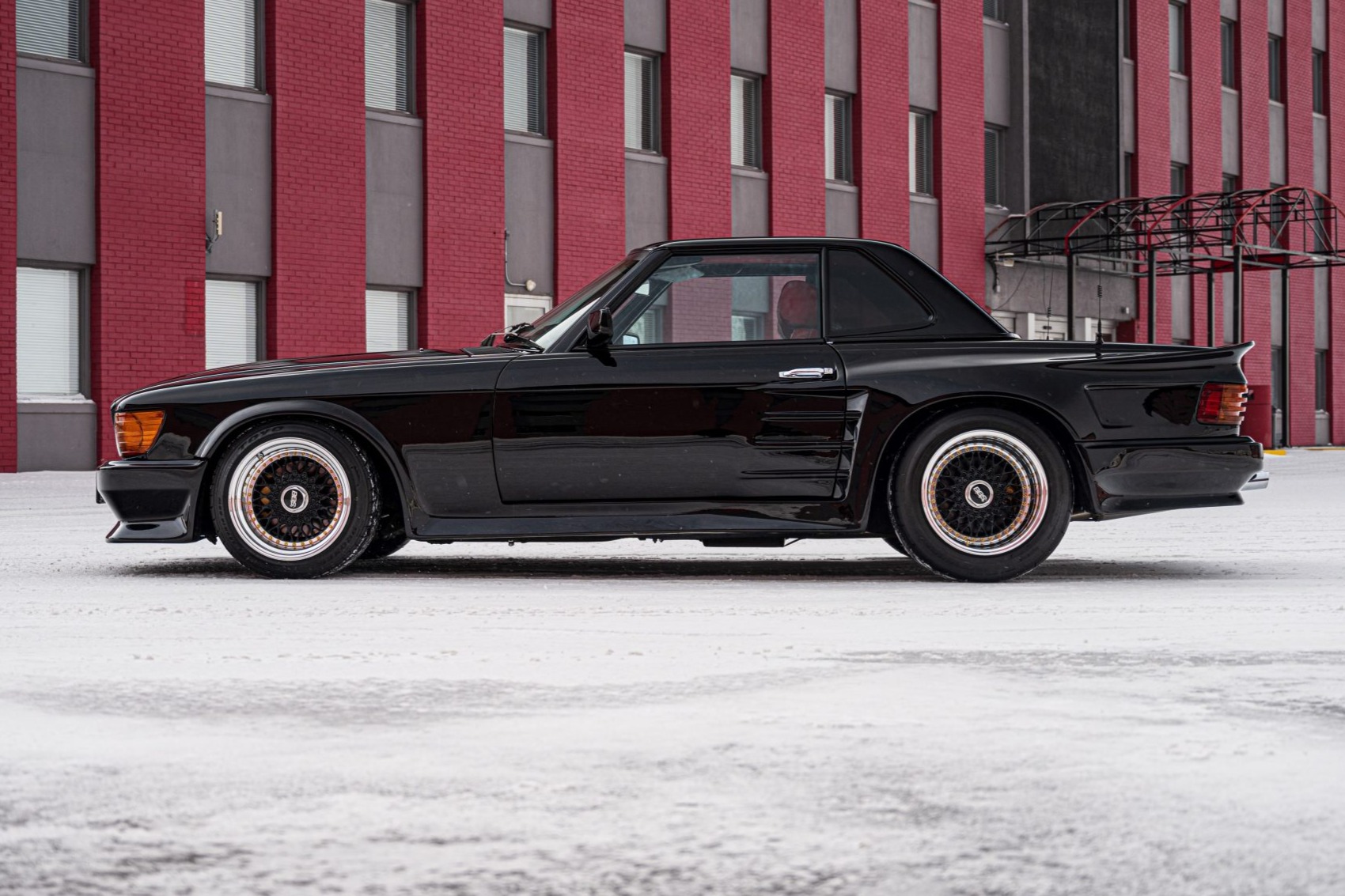 Three-piece 16″ BBS RS wheels with black centers, polished lips, and gold assembly bolts are wrapped in Toyo Proxes tires measuring 225/45 front and 275/45 rear. The steering is power-assisted, and a Dkubus Blackline 107 suspension system puts adjustable coilovers at the corners. Four-wheel disc brakes with gold-painted calipers were fitted with replacement pads, and the tie rods and ball joints are said to have been replaced in 2021.
