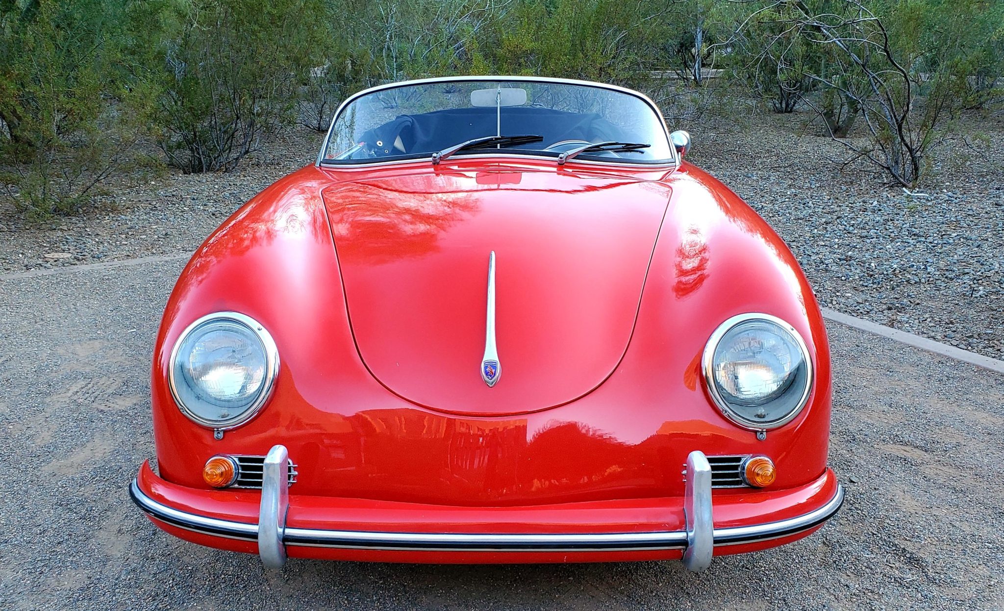 Chrome wheels are fitted with Porsche-crest hubcaps and wear 15″ Vredestein tires fitted in 2021. The seller states that the braking system was overhauled and disc brakes were fitted up front following their acquisition, and the suspension was also overhauled with replacement components.