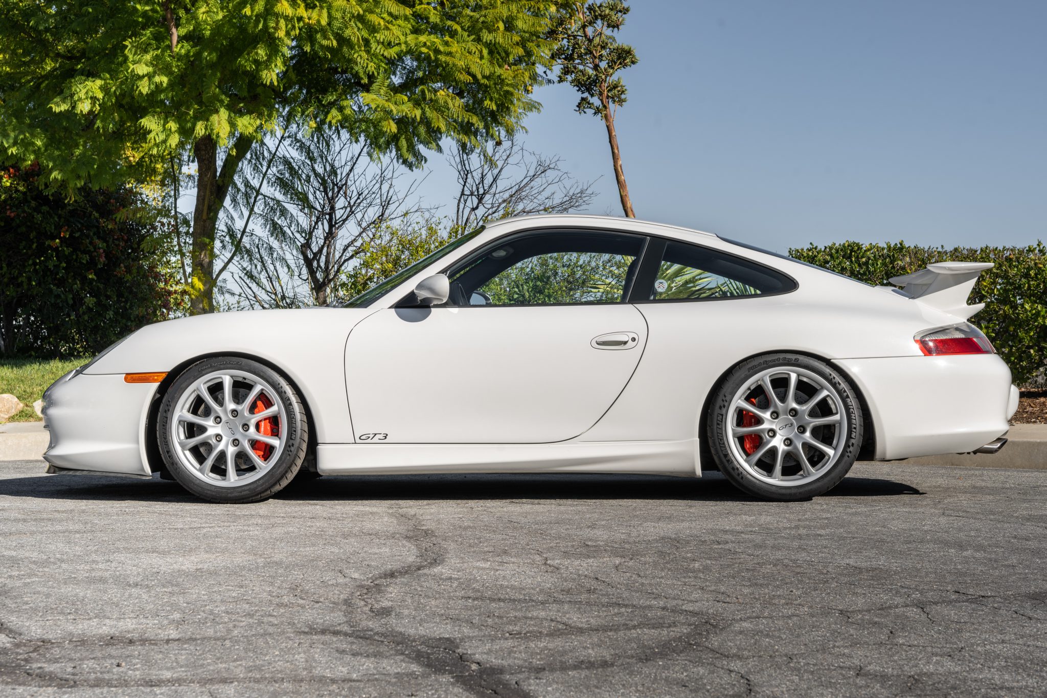 Staggered-width 18″ wheels wear GT3 center caps and are mounted with 235/40 front and 295/30 rear Michelin Pilot Sport Cup 2 tires show 2018 and 2017 date codes respectively. An RSS TS-2 suspension kit was installed in 2016 by AutoTalent of Los Angeles, California. Stopping power is provided by red Porsche-branded calipers paired with cross-drilled rotors and Goodridge stainless-steel lines at all four corners. An alignment was performed in October 2019.