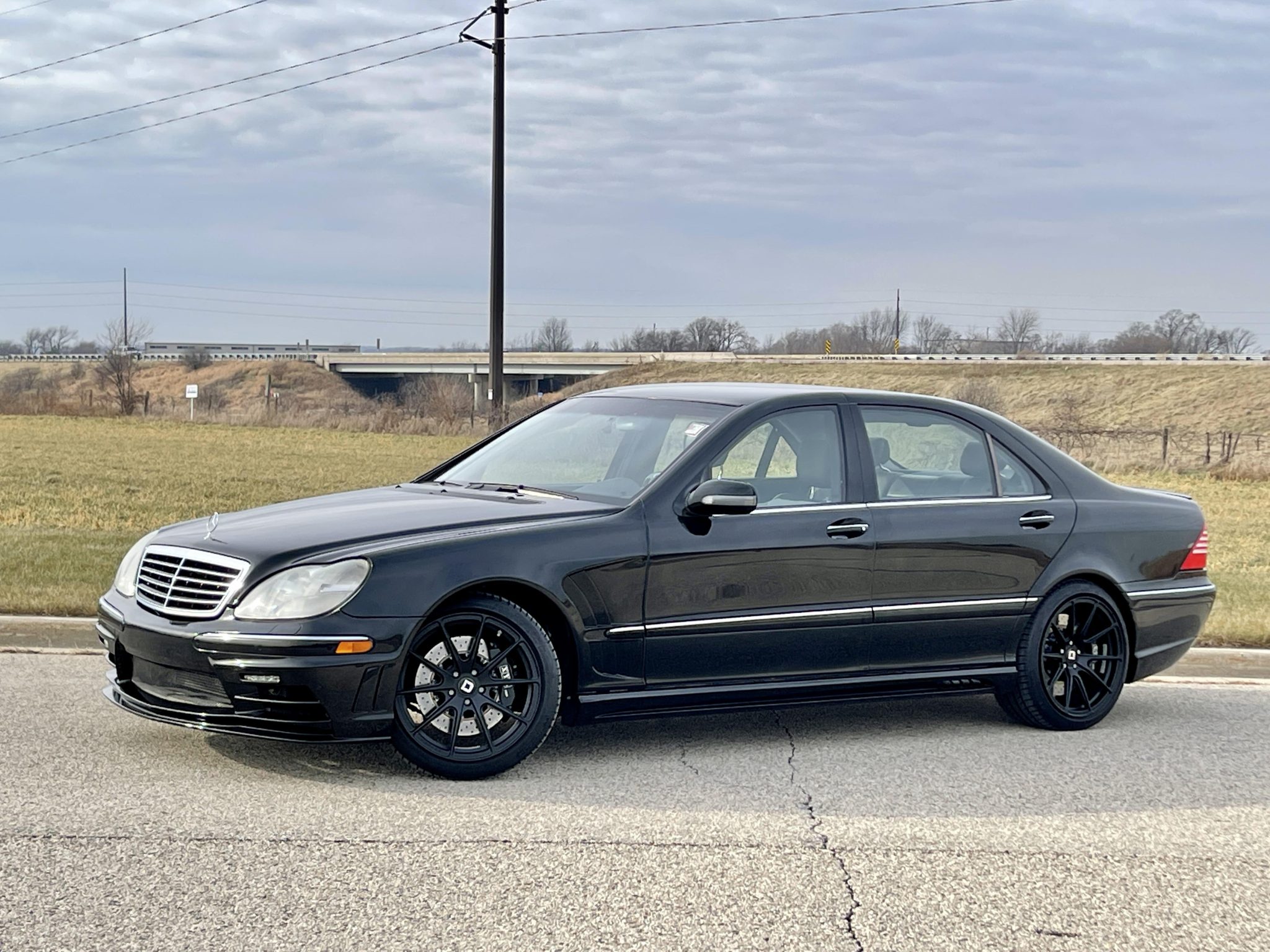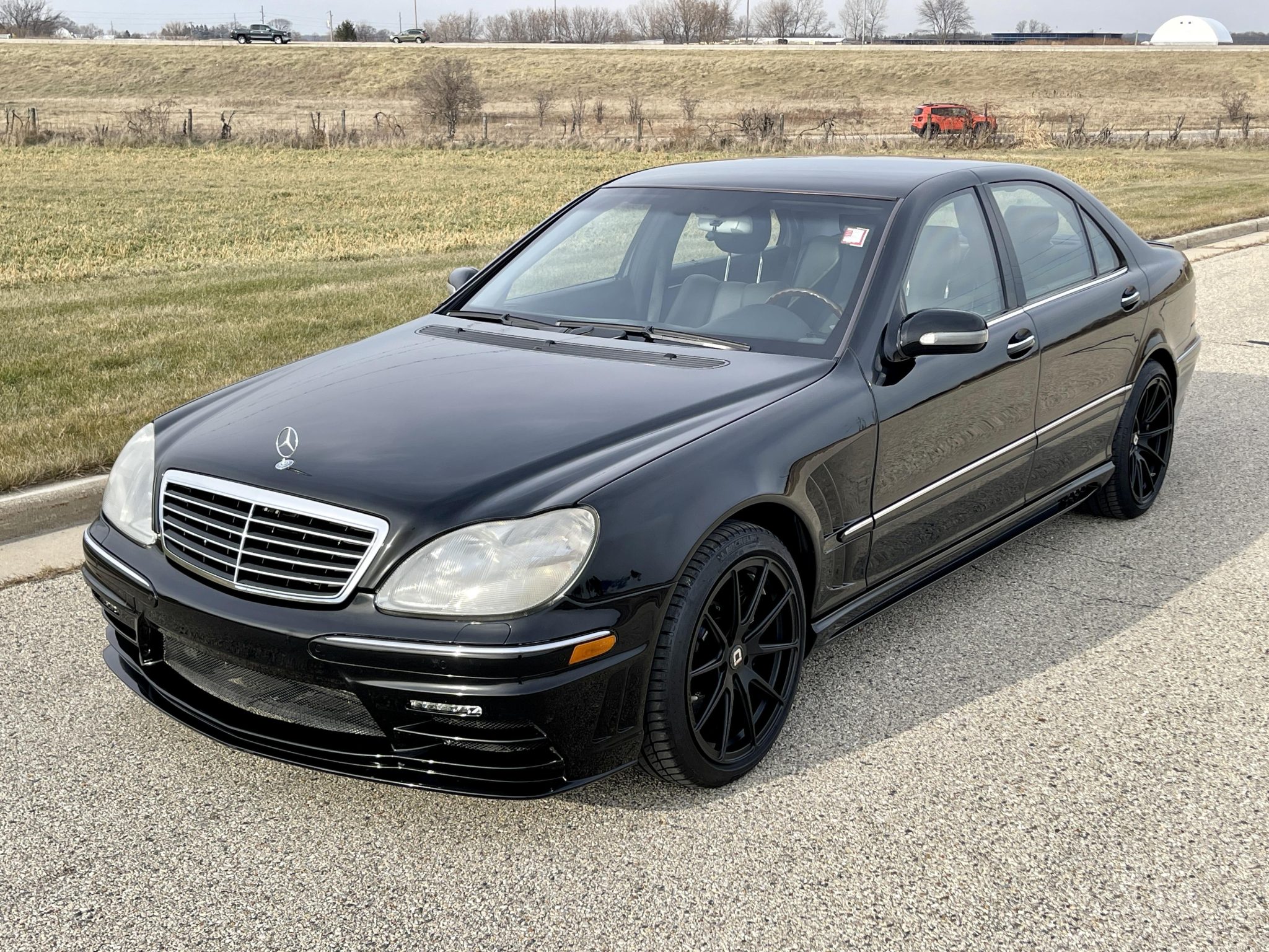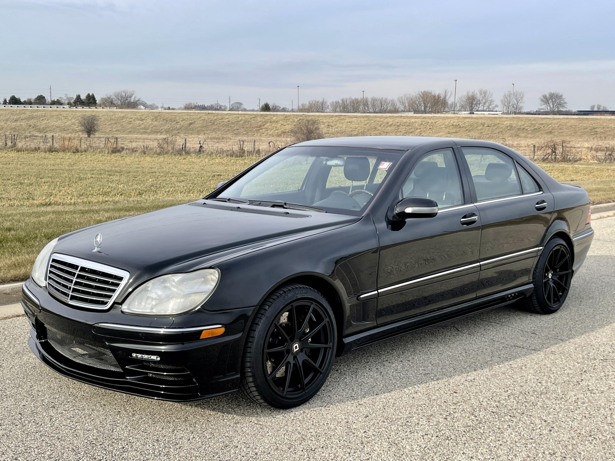 Black-finish 19″ Klassen ID wheels wear Michelin Primacy tires. The M-B Guard Special Protection Vehicle package added armored wheel wells and a reinforced rear suspension An XYZ Racing big brake kit installed under prior ownership consists of black-painted calipers paired with cross-drilled rotors.