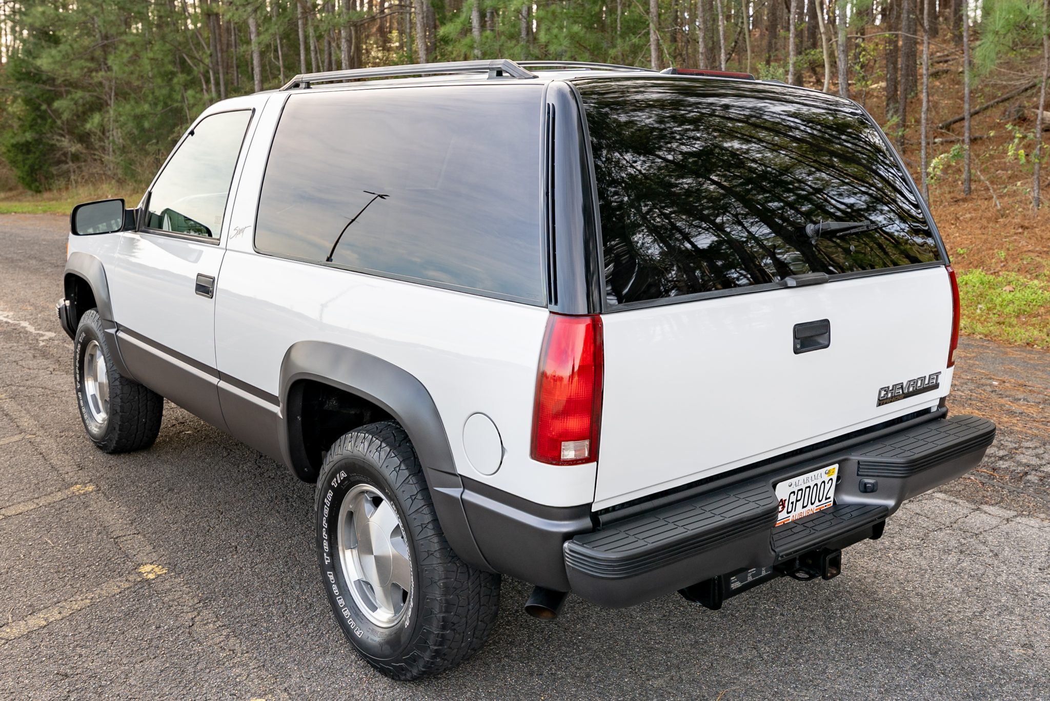 Machine-finished 16″ alloy wheels are said to have been refinished in preparation for the sale and are wrapped in 265/75 BFGoodrich Rugged Terrain T/A tires with raised white letters. The truck is equipped with the Z71 suspension package, four-wheel anti-lock brakes, and speed-sensitive power steering. A full-size spare is mounted under a cover in the rear cargo area.