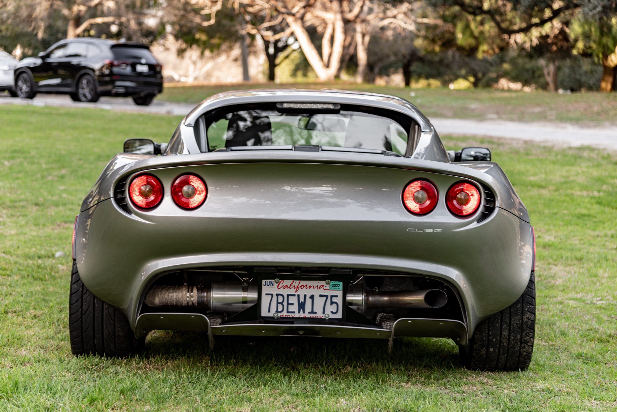 Black-finished XXR wheels measure 16″ in diameter up front and 17″ out back and wear Yokohama S-drive tires measuring 205/45 and 235/40, respectively. Braking is handled by Lotus-branded calipers over cross-drilled and slotted rotors at all four corners. The suspension and control arm bushings were reportedly replaced with polyurethane parts in 2017, and the brake fluid was flushed in 2020.