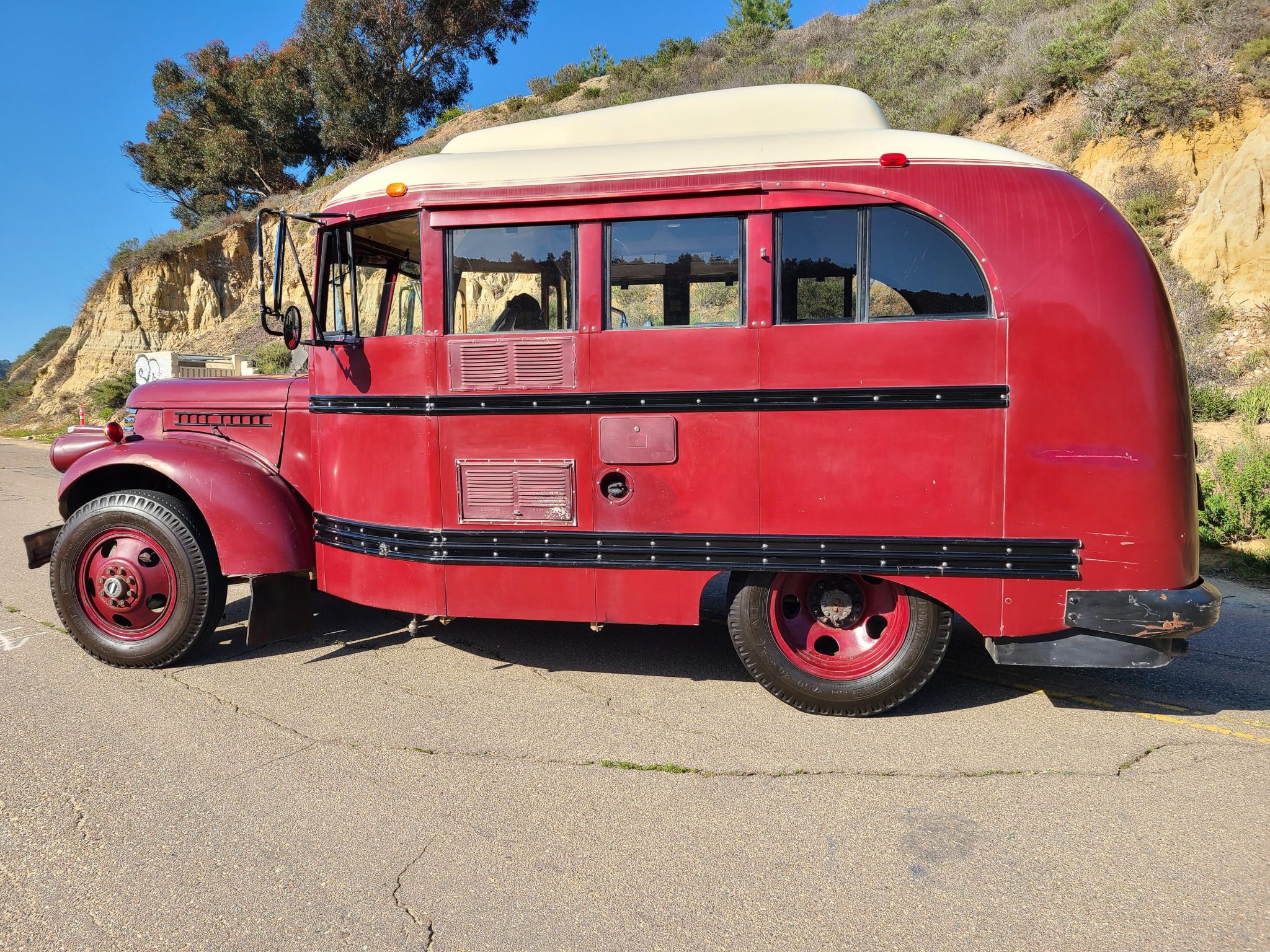 Red-finished 20″ wheels are wrapped in 7.50-20″ Power King All Position tires. Braking is handled by power-assisted discs at all four corners, and the truck is equipped with power steering and manually-locking hubs on the front axle. Front airbag suspension components are fitted, and the steering stabilizer and shocks have been recently replaced, according to the seller.