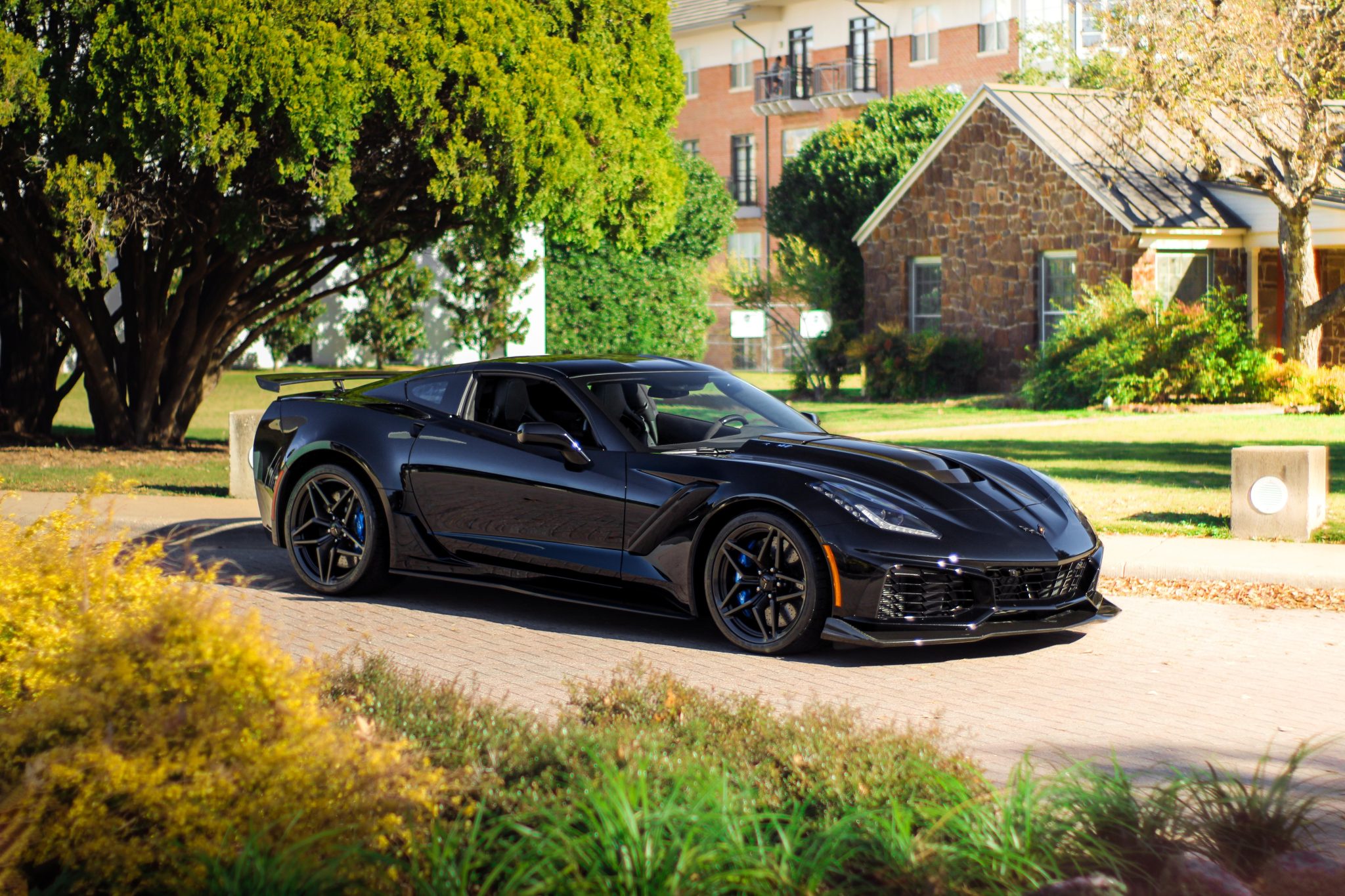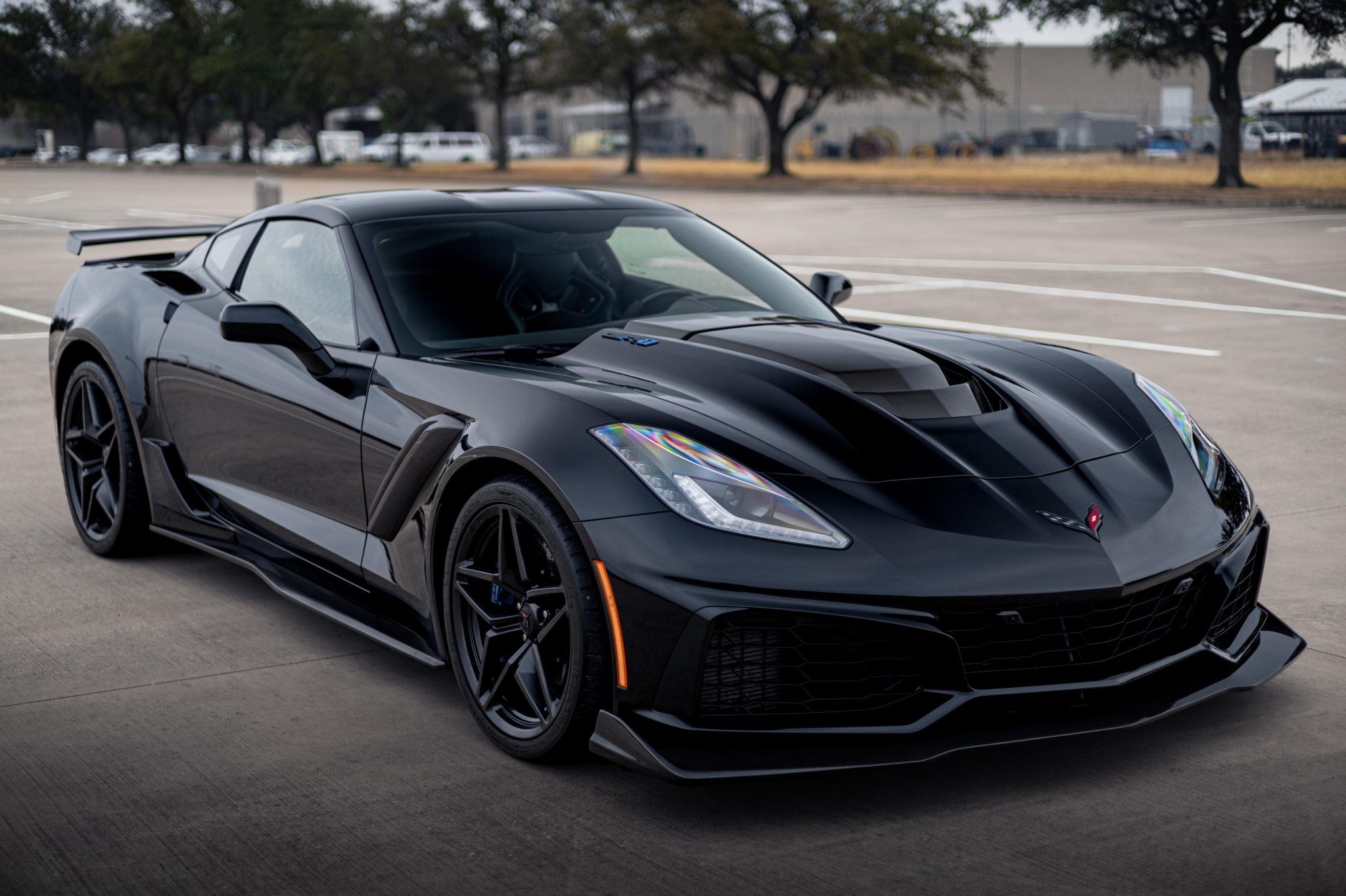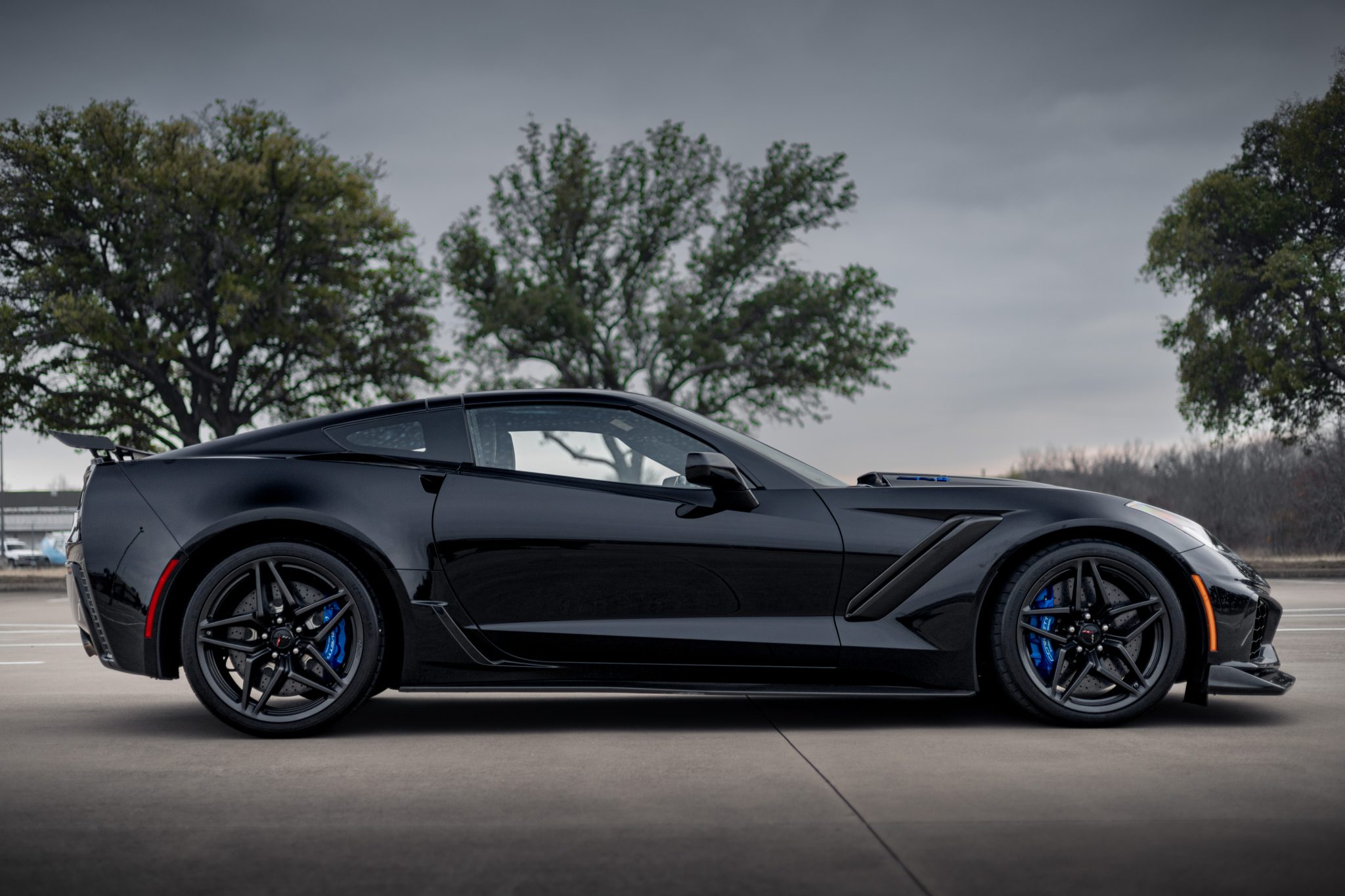 Alloy wheels measure 19″ up front and 20″ at the rear and are fitted with 285/30 front and 335/25 rear Michelin Pilot Super Sport tires. The ZR1 Performance Suspension features Magnetic Ride Control and Performance Traction Management, while stopping power is provided by carbon-ceramic rotors with blue-finished Brembo calipers at each corner.