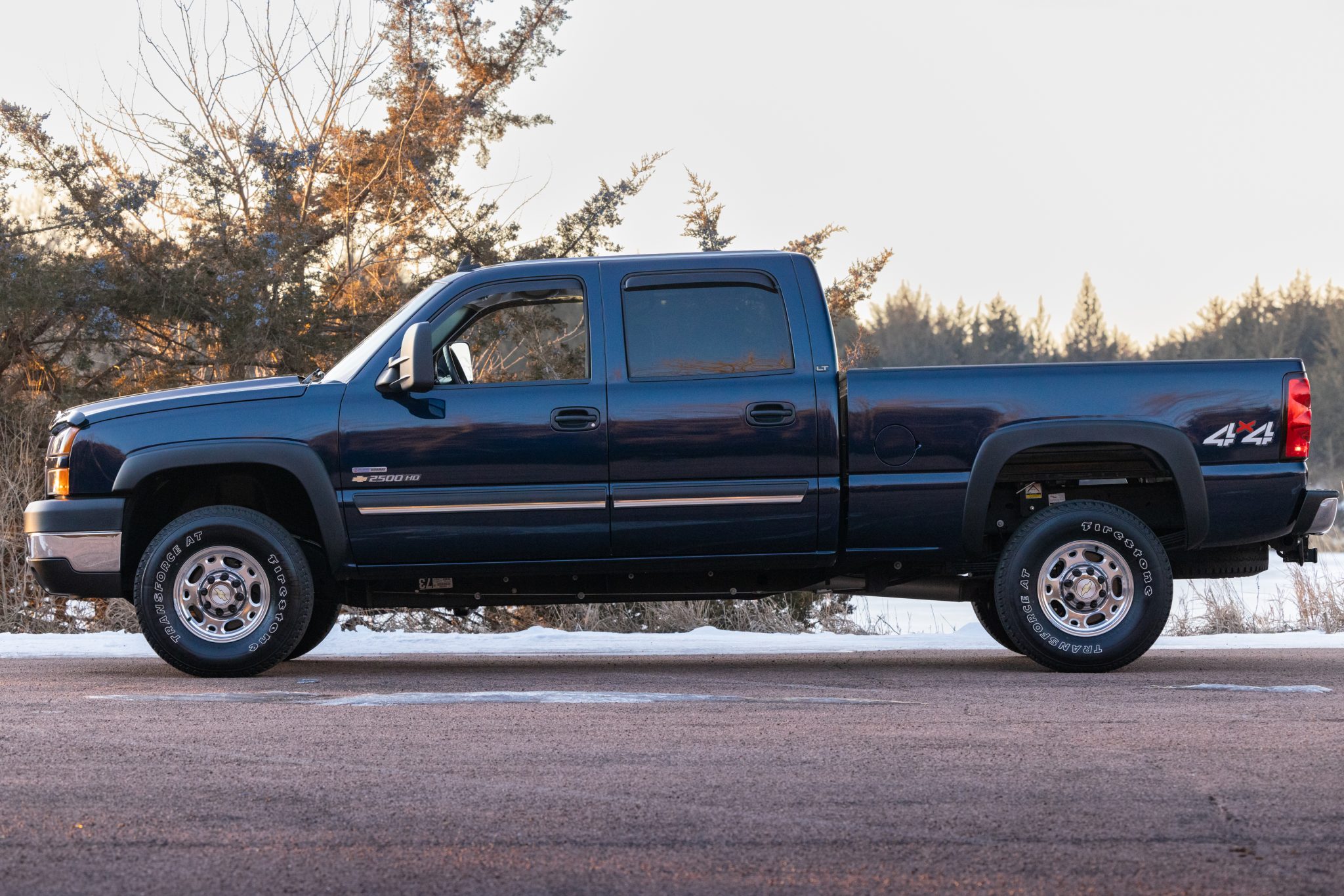 Chrome finished 16″ eight-lug wheels are mounted with 265/75 Firestone Transforce all-terrain tires. The rear suspension has been modified with airbags, and braking is handled by ventilated disc brakes at all four corners.