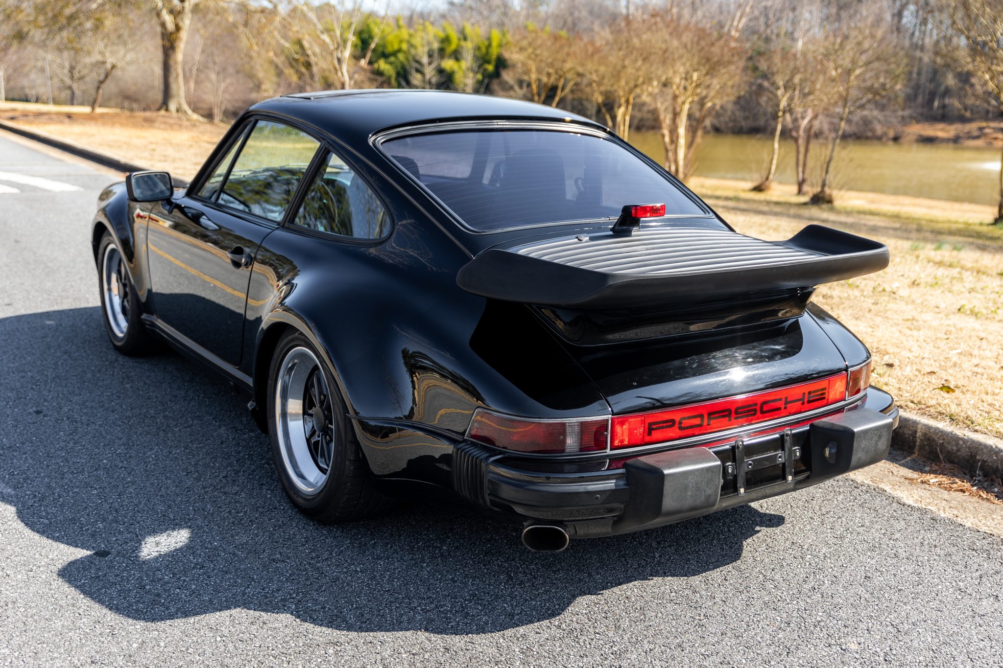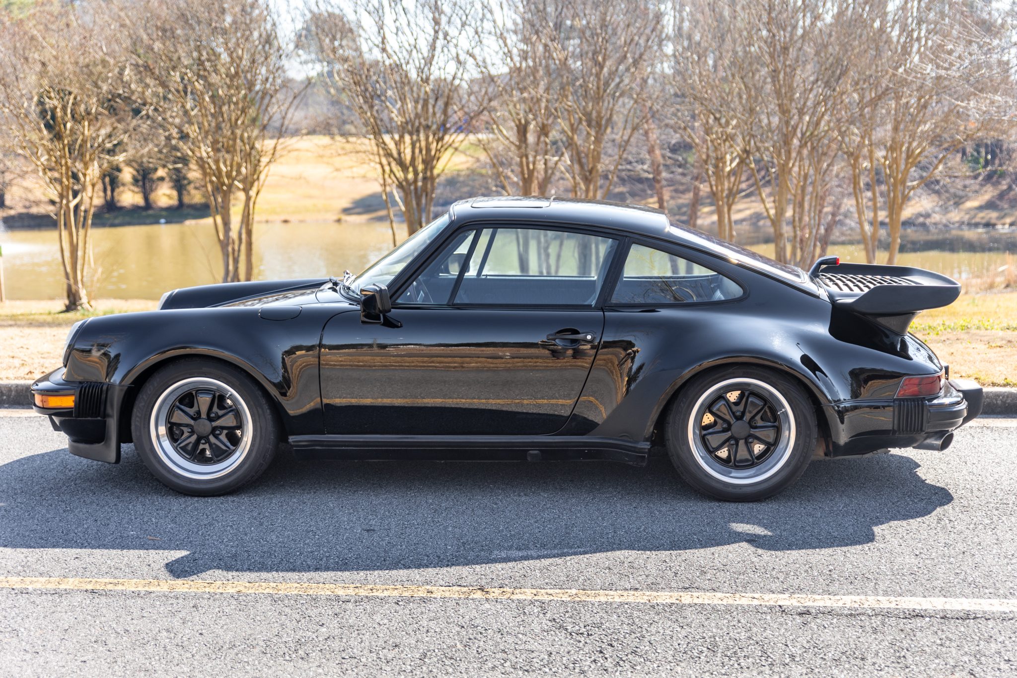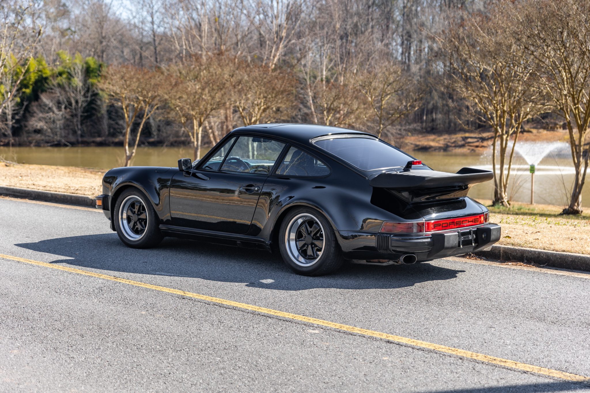 Staggered-width 16″ Fuchs wheels feature black-finished centers and are wrapped in a mix of Dunlop tires. The M491 option included the suspension and braking components sourced from the contemporary 911 Turbo, and the rear shock absorbers were replaced in 2018.