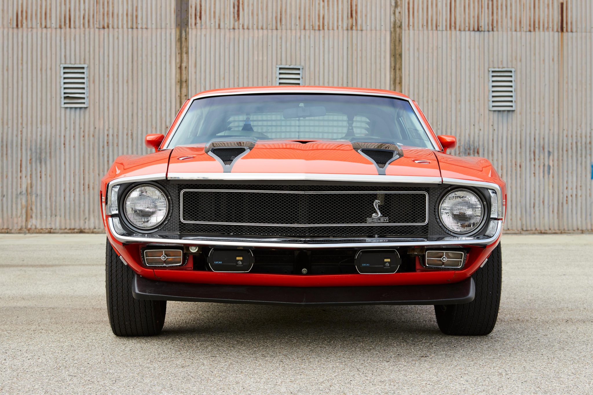 Five-spoke 15″ wheels wear black Shelby center caps and are mounted with F60-15 Goodyear Polyglas GT white-letter tires. A space-saving spare and jack are mounted in the trunk. The car is equipped with power steering, and braking is handled by power-assisted front discs and rear drums.