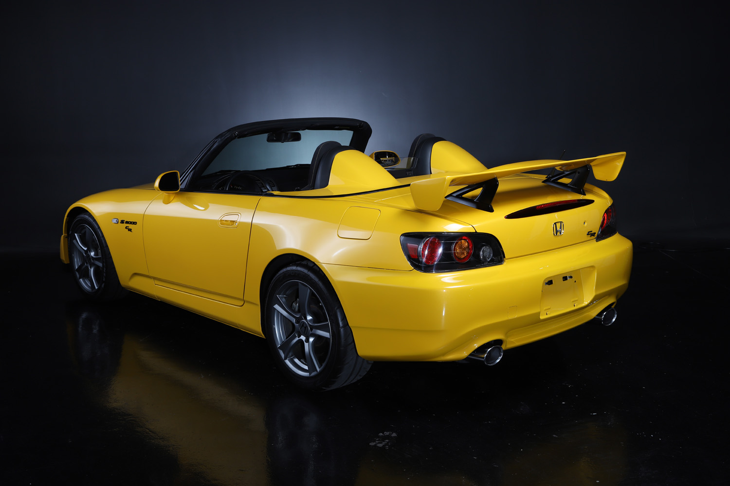 Factory 17″ five-spoke alloy wheels are wrapped in Bridgestone Potenza RE71R tires. The CR model also features higher-rate springs, stiffer anti-roll bars, and a quicker steering ratio compared to the standard AP2 S2000.