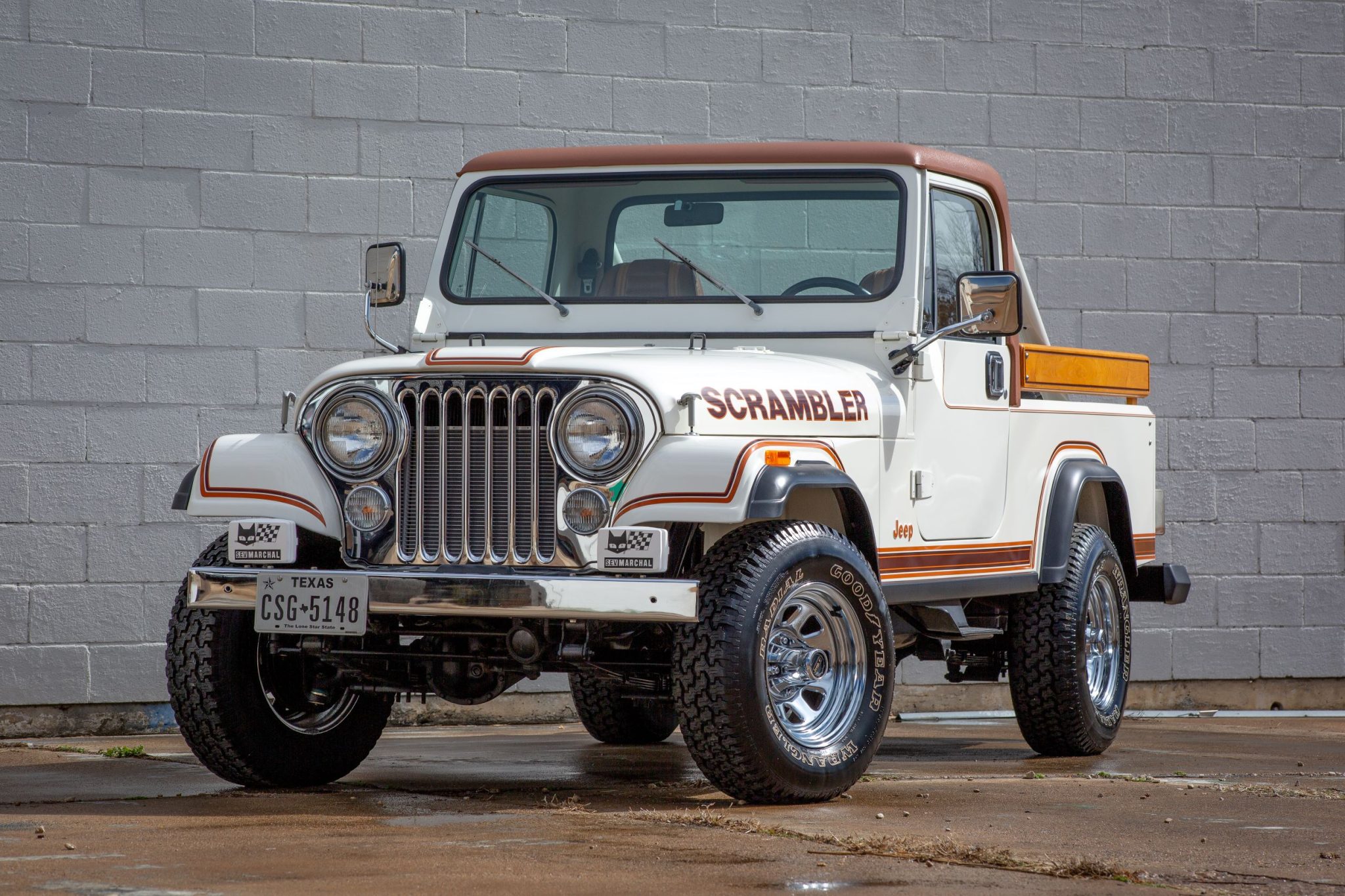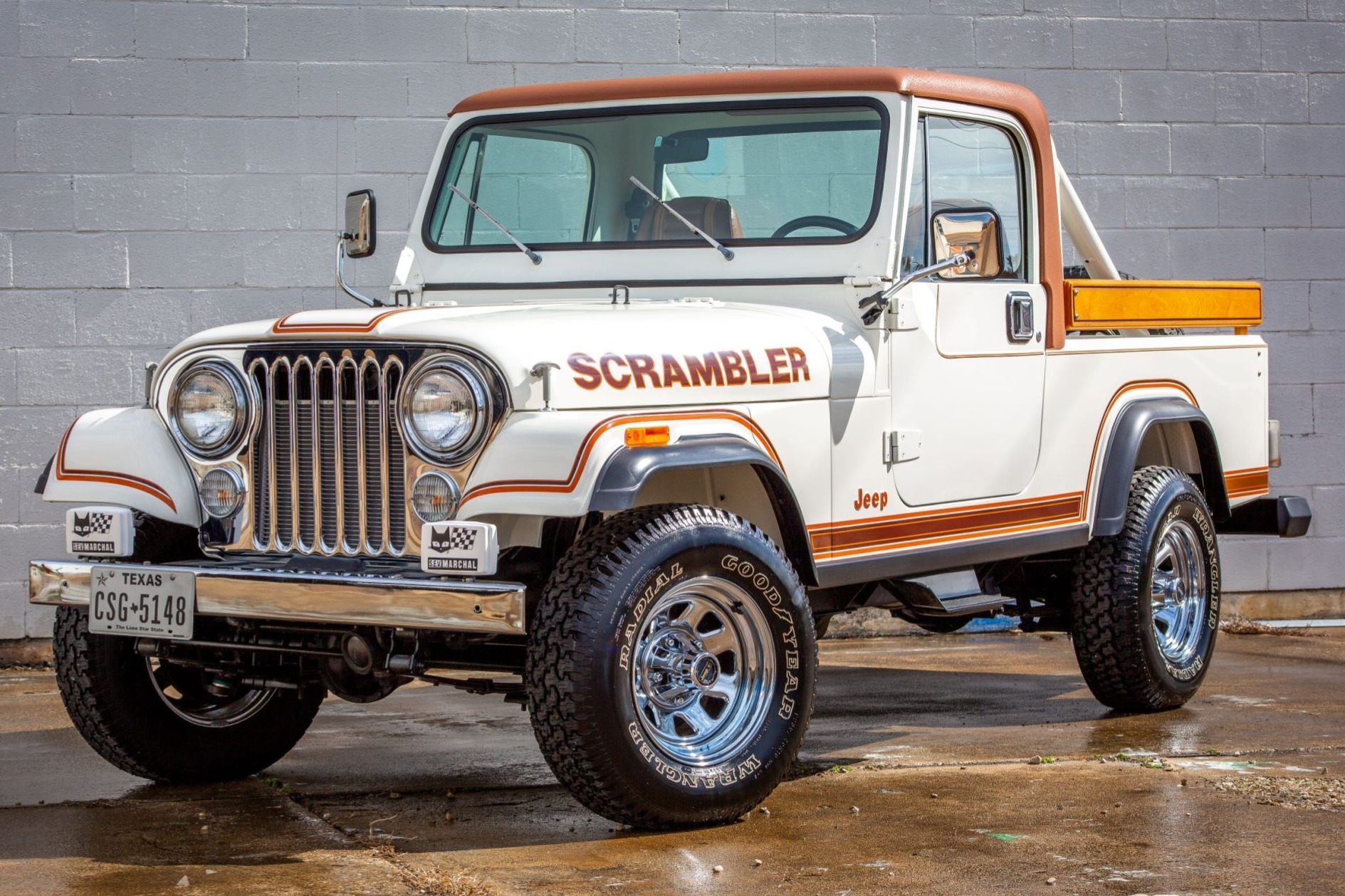 Polished 15″ wheels are wrapped in 235/75 Goodyear Wrangler Radial tires, and the front axle features locking hubs. A full-size spare is mounted to the rear swing-away carrier.