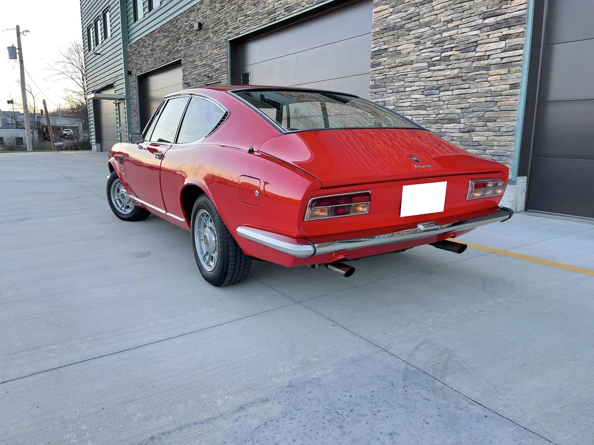 The 14″ Cromodora wheels wear polished Fiat hubcaps and are mounted with 185/70 front Sumic GT70A and rear Pirelli P3000 tires. The Dino coupe featured a 100.4″ wheelbase, nearly 11″ longer than that of its Pininfarina-designed convertible counterpart. The suspension features coil-sprung control arms at the front and a leaf-sprung live rear axle with quad shock absorbers out back. Stopping power is provided by discs at all four corners.
