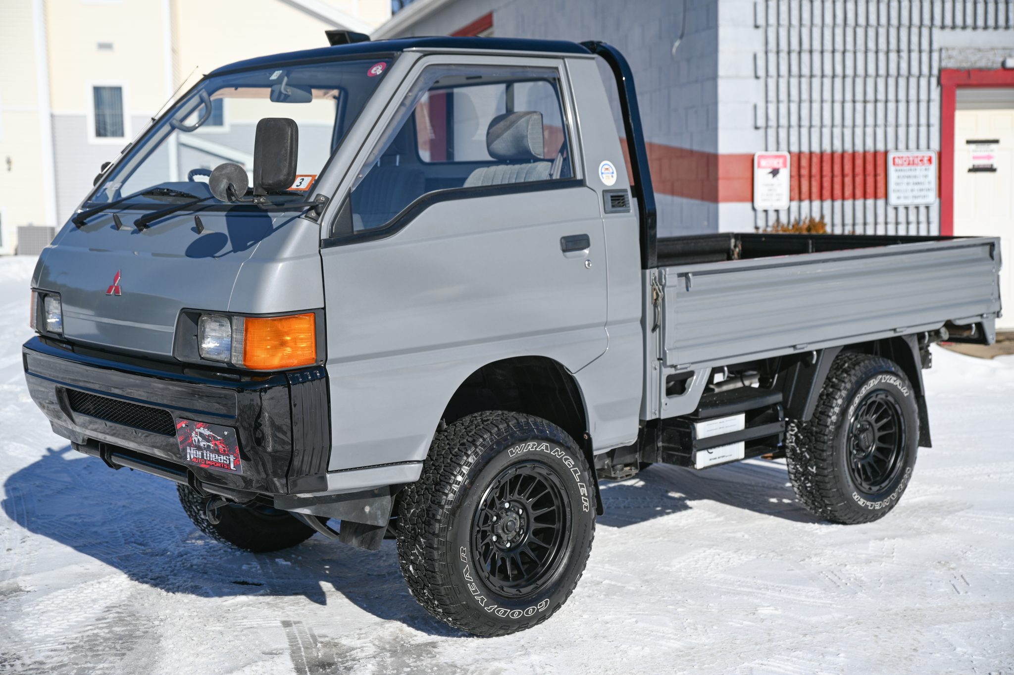 Black-finished 17″ KMC wheels wear 265/65 Goodyear Wrangler Trailrunner A/T tires. A suspension lift kit has been installed and the braking system has reportedly been serviced by the selling dealer with replacement pads and resurfaced rotors. The tires are said to rub the front fenders when turning.