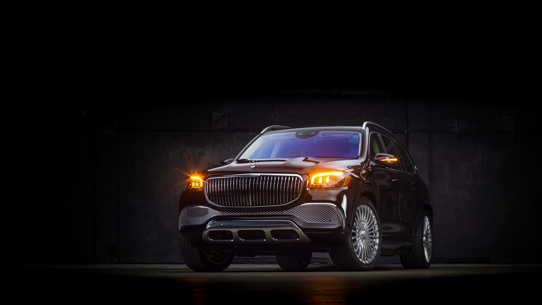 Chrome-finished 24-spoke 23″ forged wheels are mounted with 285/40 front and 325/35 Pirelli P Zero tires. The Airmatic air suspension and E-Active Body Control allows the truck to lower when the doors are opened and also reduces body roll and scans the road surface while the vehicle is in motion. Braking is handled by four-wheel discs enhanced with Active Brake Assist with automated emergency braking.