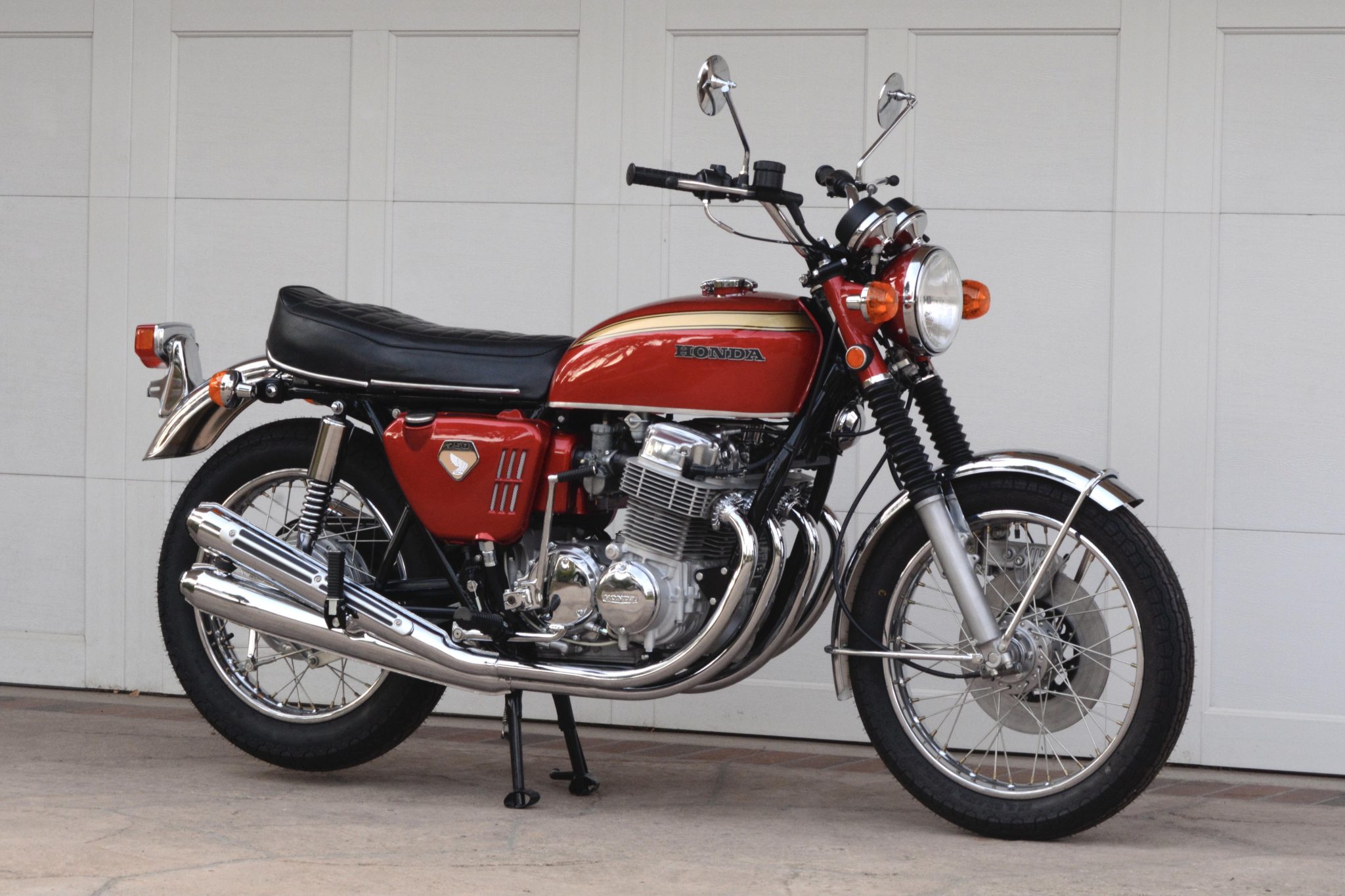 Re-chromed rims measuring 19″ up front and 18″ at the rear are laced to clear-coated hubs with zinc-plated spokes and were mounted with IRC Grand High Speed GS-11 tires during the refurbishment. Suspension consists of a rebuilt telescopic fork with black rubber gaiters and clear-coated sliders as well as a swingarm mounted with dual chrome-shrouded shocks. Braking is from a disc with a rebuilt caliper up front and a drum at the rear.