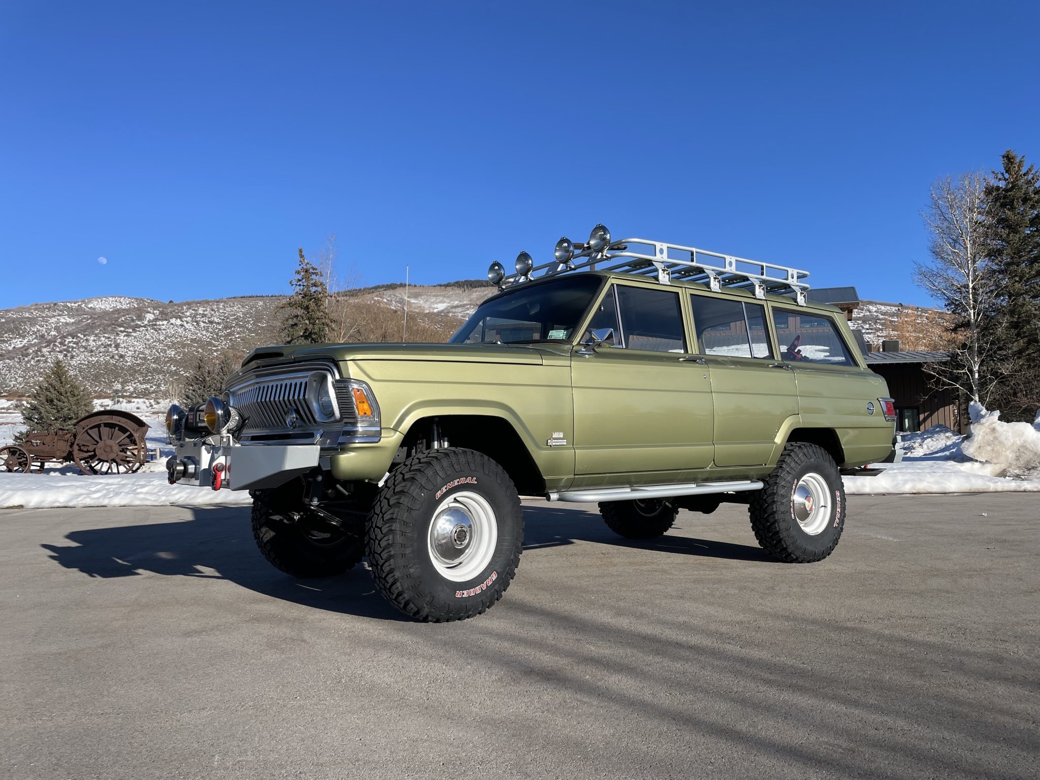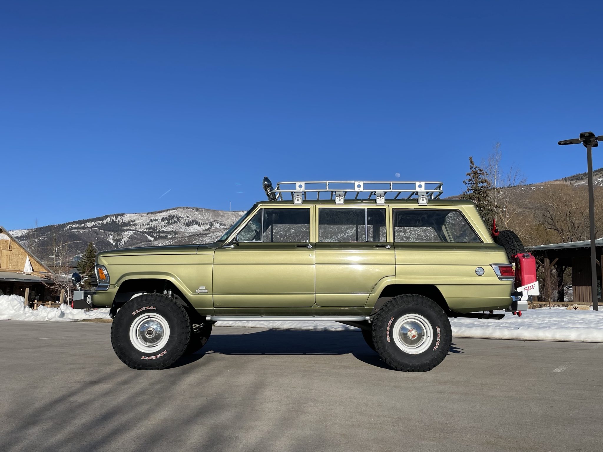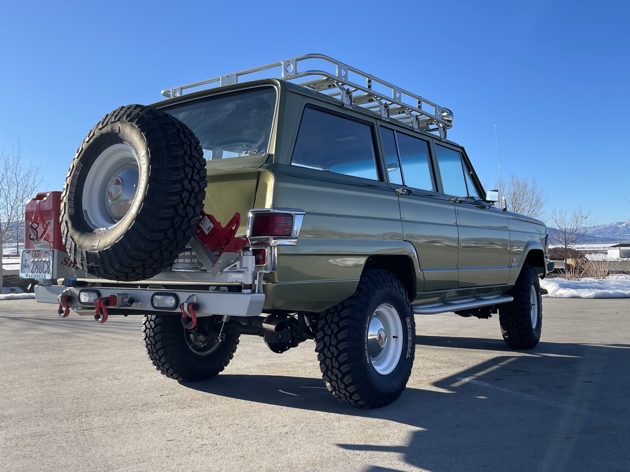 Steel 15″ wheels carry “dog dish” hubcaps and are mounted with 33×10.5″ red-letter General Grabber tires installed under current ownership. Additional work included the installation of Bilstein shocks and the replacement of the springs and bushings.