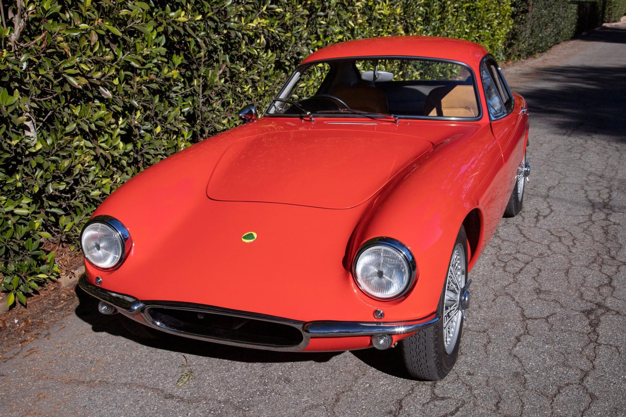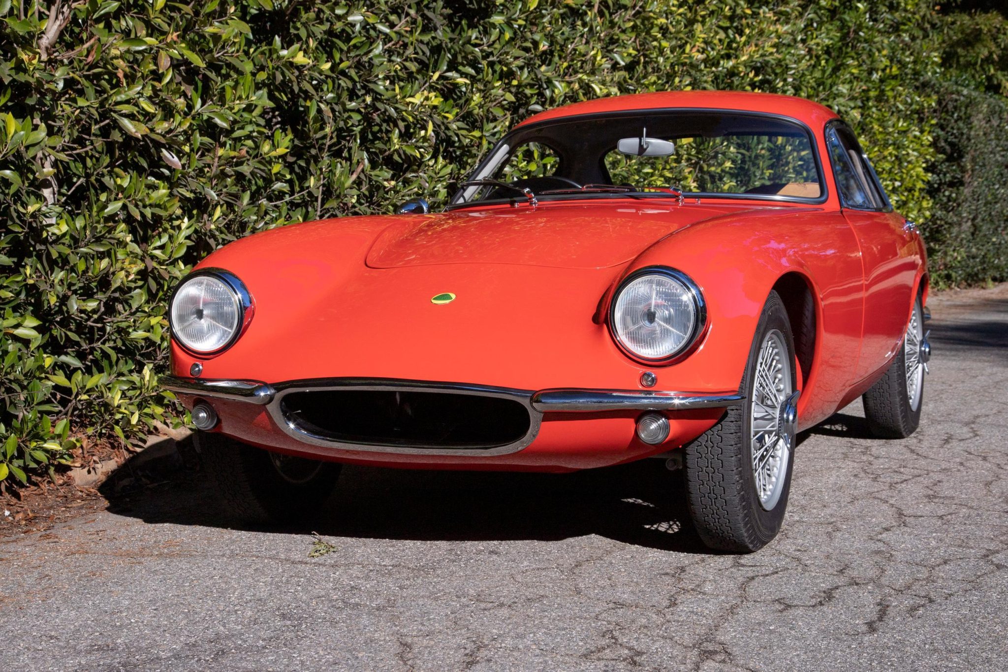 This example was disassembled and stripped to bare fiberglass by Costa’s Auto Works in Carpinteria, California, after which the body was refinished in Poppy Red, which is said to be its original shade. Brightwork was also refurbished during the restoration, and rubber body and glass seals were replaced. Features include Lucas PL tripod headlights, a driver-side bullet-style side mirror, an external fuel-filler cap, and a pair of removable plexiglass side windows, the latter of which are accompanied by padded storage bags. Photos of glass etchings can be viewed in the gallery below.
