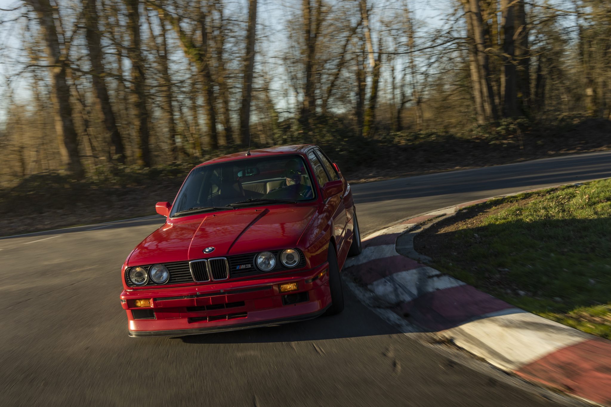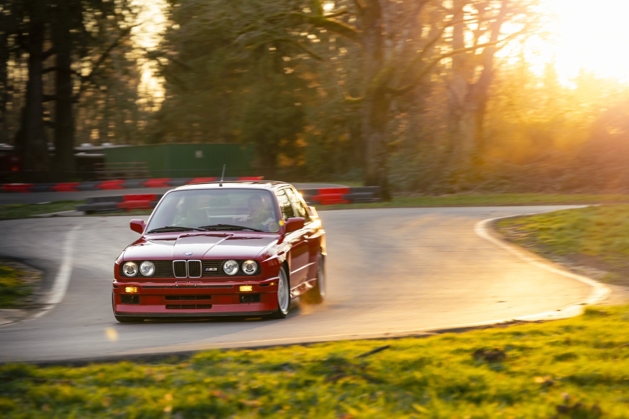 Aftermarket 16″ Hartge wheels are wrapped in 225/45 front and 245/45 rear Toyo Proxes R888 tires. Modifications reportedly consist of aluminum front control arms, polyurethane control arm bushings, a Racing Dynamics front strut brace, H&R 15mm spacers, and a Dinan S3 suspension package that included updated shocks, springs, and sway bars. A removed set of style 5 wheels is included in the sale.
