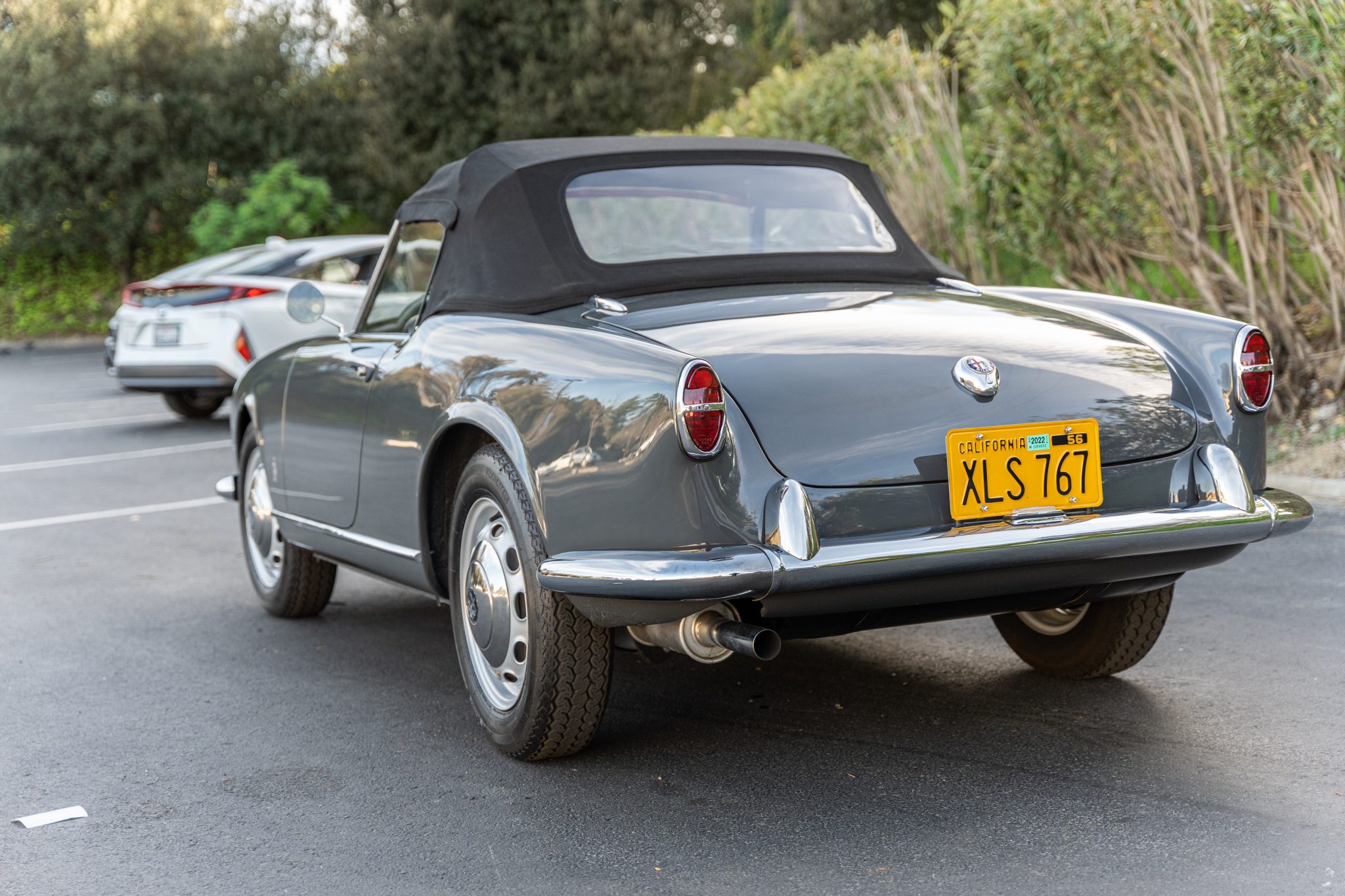 Silver-painted 15” Ruote Borrani steel wheels feature chrome hubcaps and are mounted with 155-width Vredestein Sprint Classic tires. Stopping power is provided by four-wheel drums.