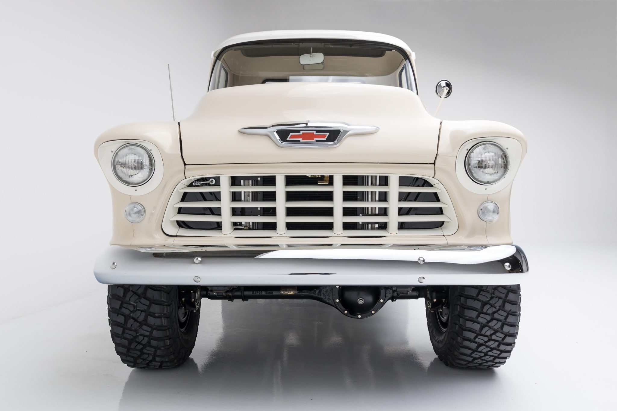 The 16″ Wheel Vintique wheels are mounted with 305/70 BFGoodrich Mud-Terrain T/A tires. A full-size spare is mounted to the bedside, and the truck is equipped with power steering, a trailer braking system, and soft ride springs. Braking is handled by power-assisted front discs and rear drums. The lift kit and springs were installed in 2021.