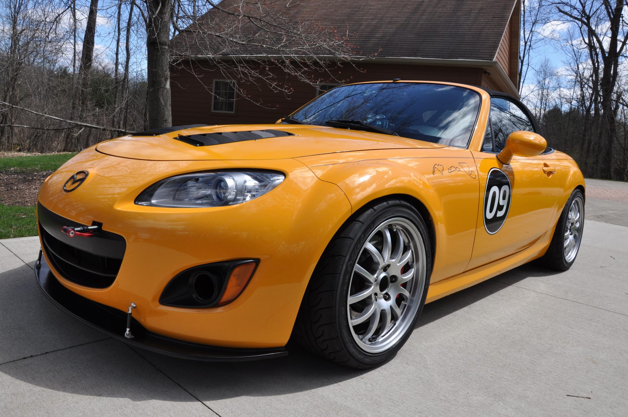 Silver-finished 949 Racing 17″ wheels wrapped in recently mounted Yokohama Advan Neova AD08R tires. Braking and suspension modifications include the following: