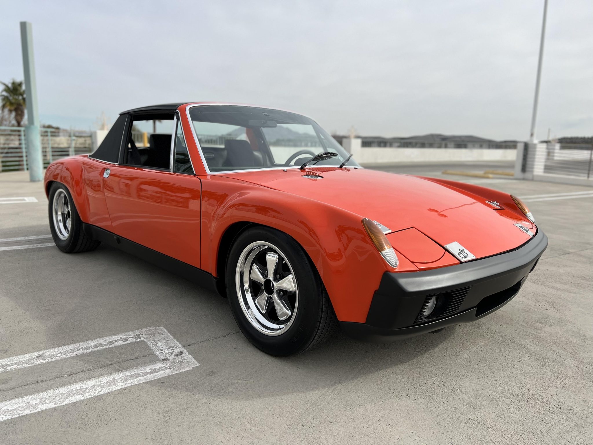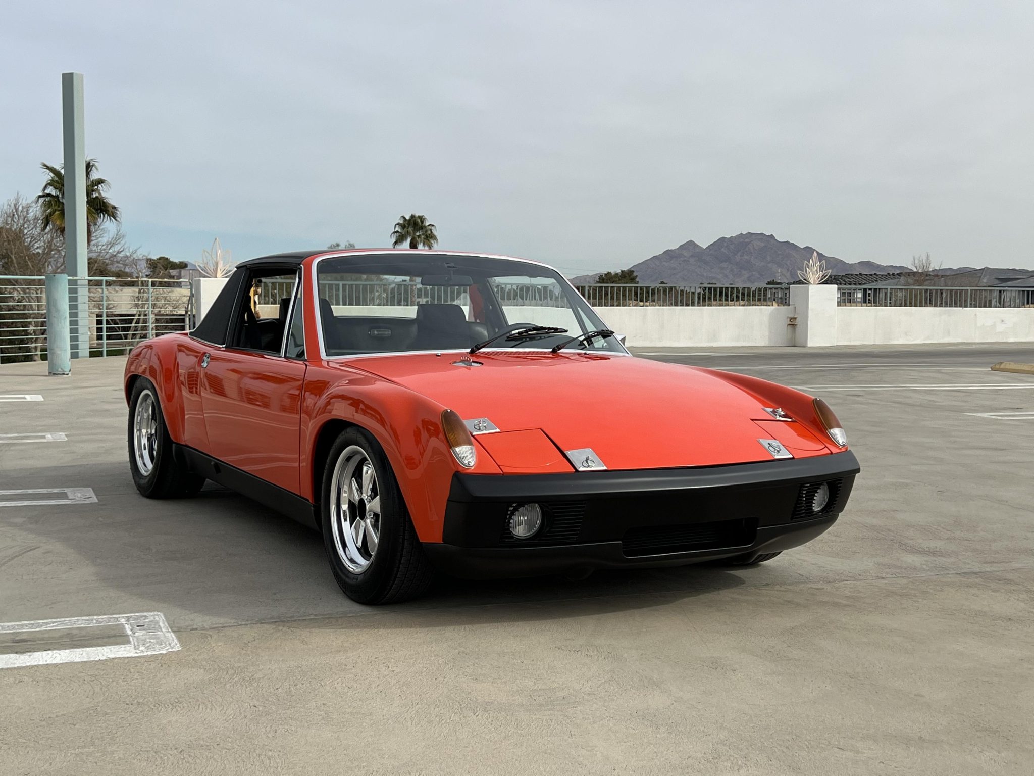 Polished 15″ Fuchs-style wheels measure 7″ up front and 8″ out back and wear Michelin TB tires sized 215/55 and 270/45, respectively. Stopping power is provided by four-wheel disc brakes with 964-sourced front rotors and calipers. The suspension was modified with 911-sourced front spindles, five-lug hubs, and Bilstein shocks along with adjustable rear coilovers.
