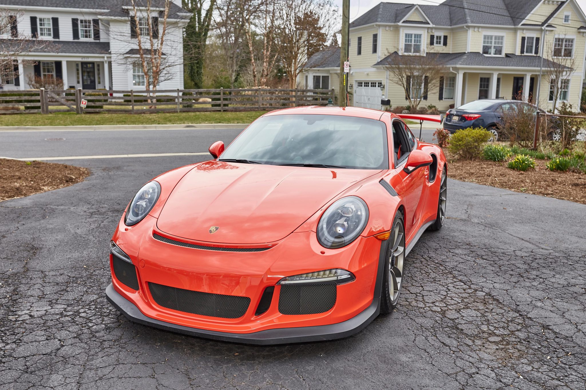 Dark gray 20″ and 21″ center-lock wheels are mounted with 265/35 front and 325/30 rear Michelin Pilot Sport 4S tires showing 2019 date codes. The car is equipped with Porsche Active Suspension Management and Porsche Torque Vectoring Plus. Stopping power is provided by optional Porsche Ceramic Composite Brakes with yellow six- and four-piston calipers. The brake fluid was changed in April 2021.