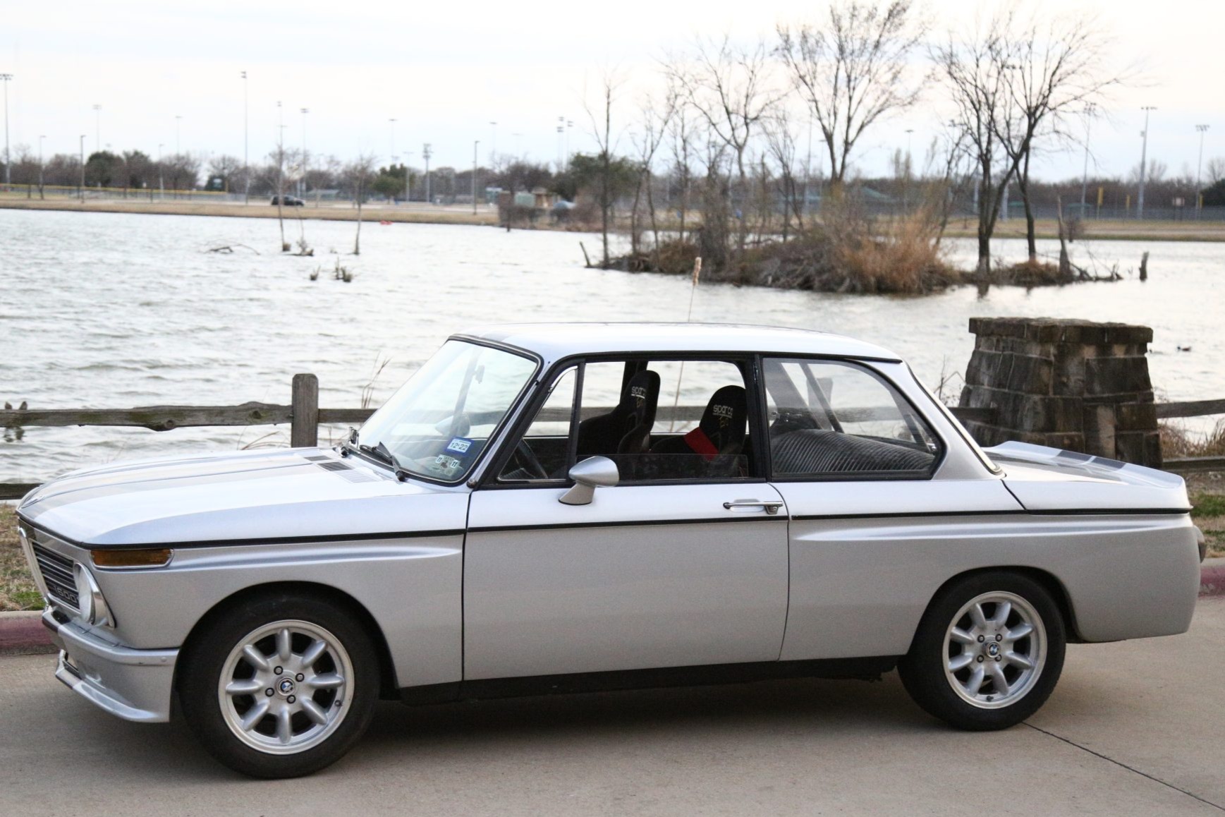 Panasport-style 15×7″ wheels are wrapped in 205/55 Nankang tires. Braking is handled by ventilated front discs said to have been sourced from an Alpina model along with rear drums, which were converted to 250mm in diameter. Additional modifications performed to the braking system by Korman Autoworks included a tii-sourced master cylinder and front calipers, a brake pressure regulator, and braided stainless hoses. Modifications to the suspension system include: