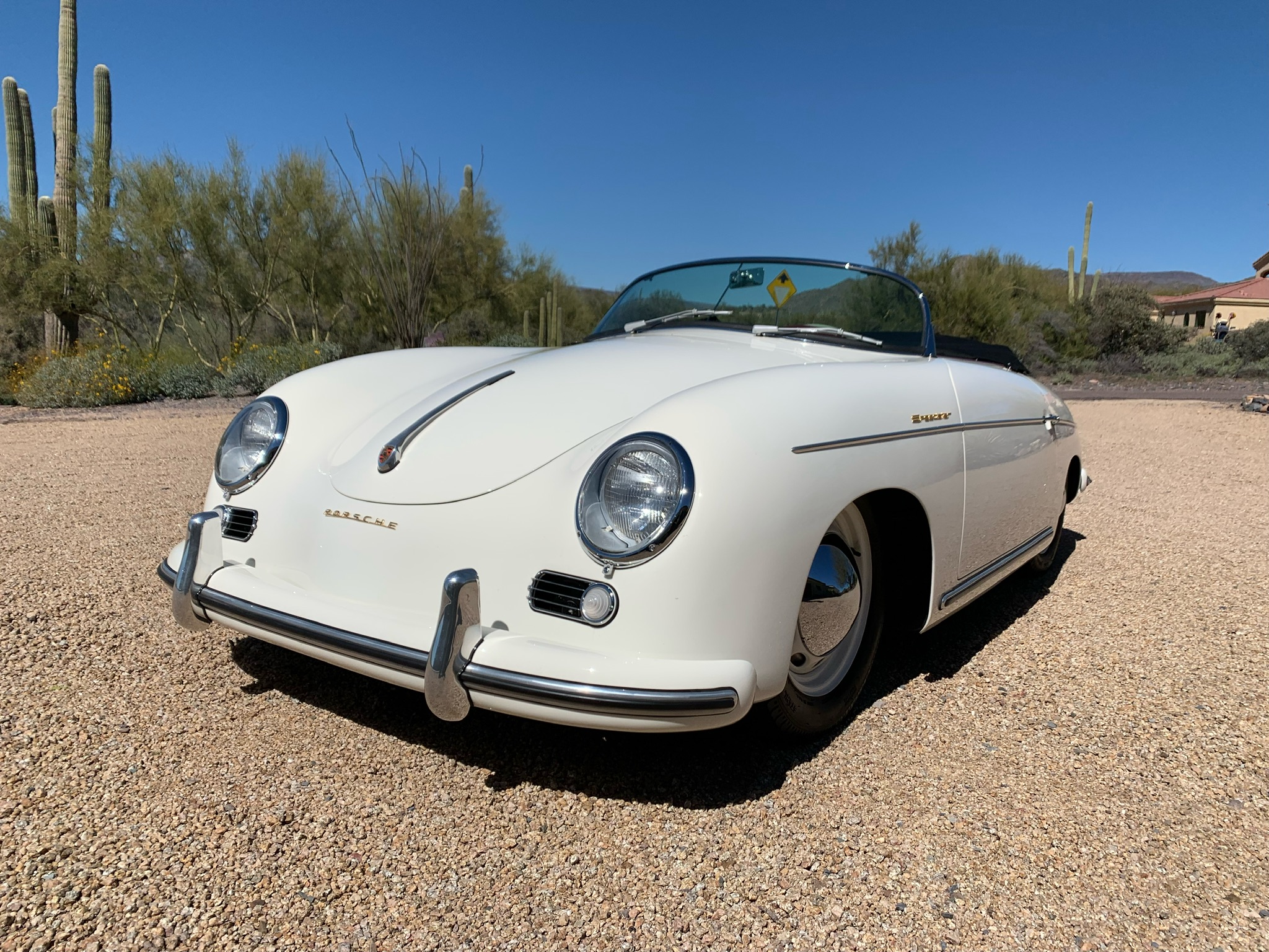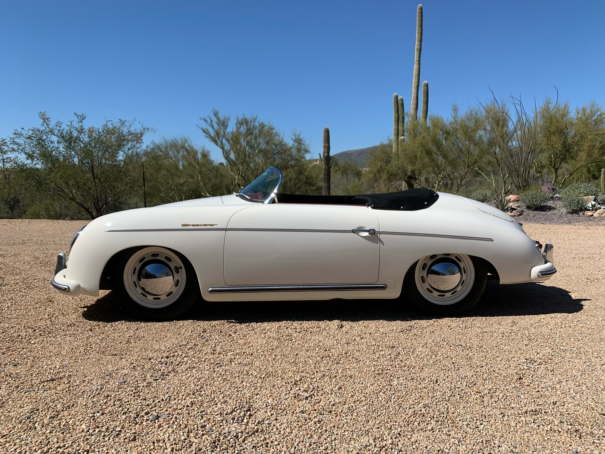 The body-colored 16″ wide-five steel wheels wear chrome baby moon hubcaps and are mounted with 5.00R16 Excelsior Stahl Sport Radial tires. Koni shocks are fitted at all four corners, and stopping power is provided by four-wheel drum brakes that have been refurbished by Martin Willis of The Machine Shop in Colorado Springs. The front suspension C-links have been modified for 1.5 degrees of negative camber. The brakes were adjusted in preparation for sale.