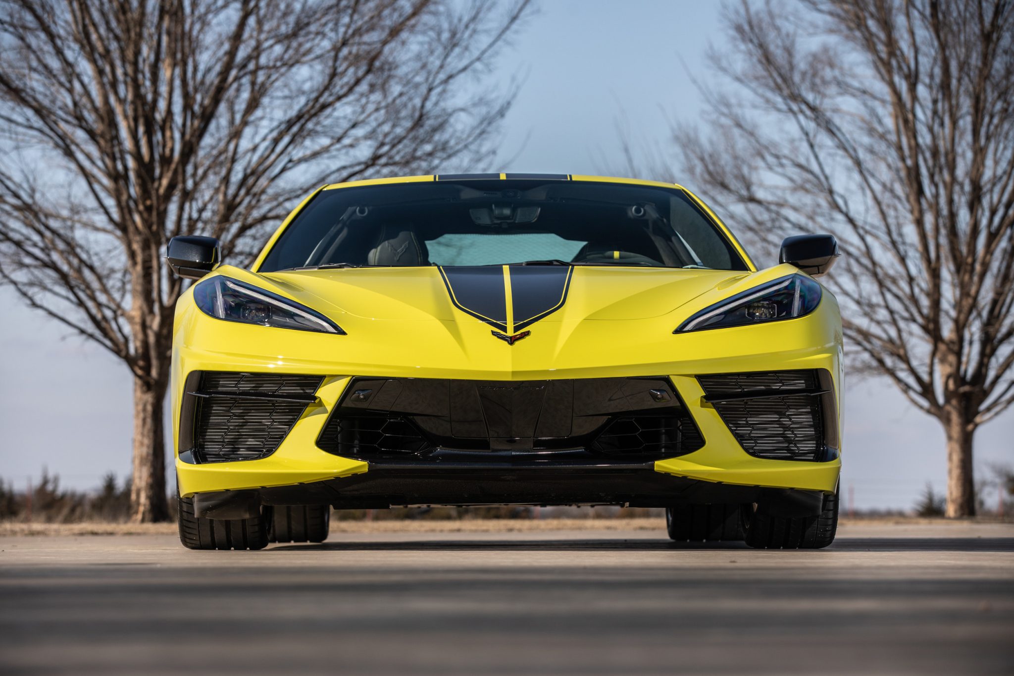 The black 19″ and 20″ Trident wheels wear ‘Jake’ logo center caps and are mounted with 245/35 front and 305/30 rear Michelin Pilot Sport 4S tires. Equipment includes the Z51 Performance Package, which incorporates performance suspension and a performance braking system with yellow-finished calipers as well as a performance traction-control system and a front-axle lift function.