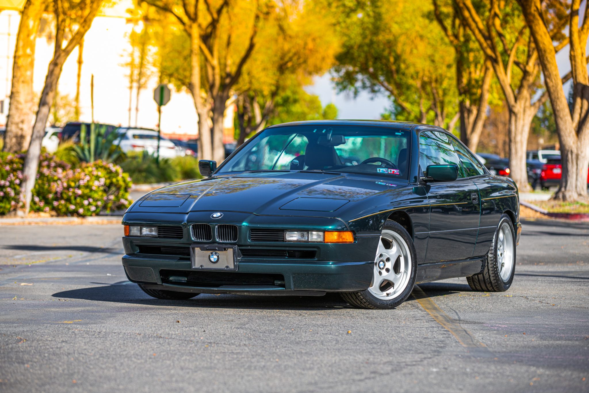 Forged-aluminum 17″ BMW Style 21 wheels wear directional “throwing star” covers and are mounted with General G-Max tires measuring 245/40 up front and 275/40 out back that are said to have been mounted in preparation for the sale. Braking is handled by cross-drilled rotors at all four corners paired with Brembo calipers on the front axle, and the car is equipped with All-Season Traction Control. A spare wheel and tire are located in the trunk, and a tool kit is mounted to the trunk lid. Blemishes on the wheels can be seen in the gallery below.