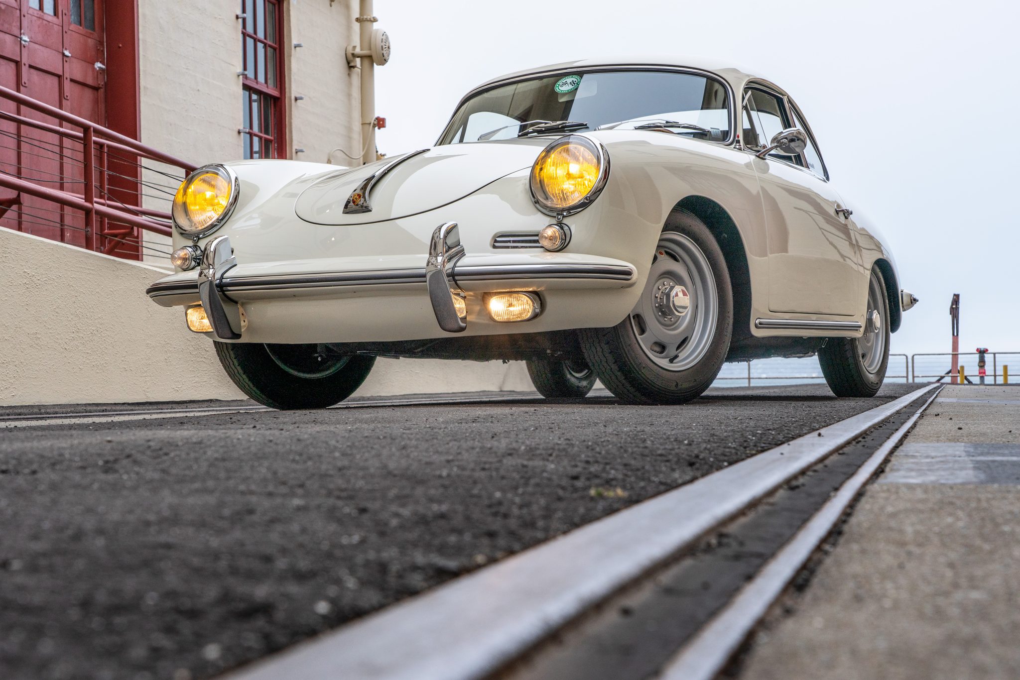 Rudge-style 15″ Coddington wheels are finished in satin silver and are wrapped in period-style 155R Avon CR6ZZ tires. Service in 2012 reportedly included installing bronze front axle link pin and king pin bushings and replacing the suspension bushings, shocks, and steering stabilizer. Braking is handled by finned four-wheel aluminum drums, and the wheel bearings were replaced by Merz Enterprises of Penngrove, California in March 2020.