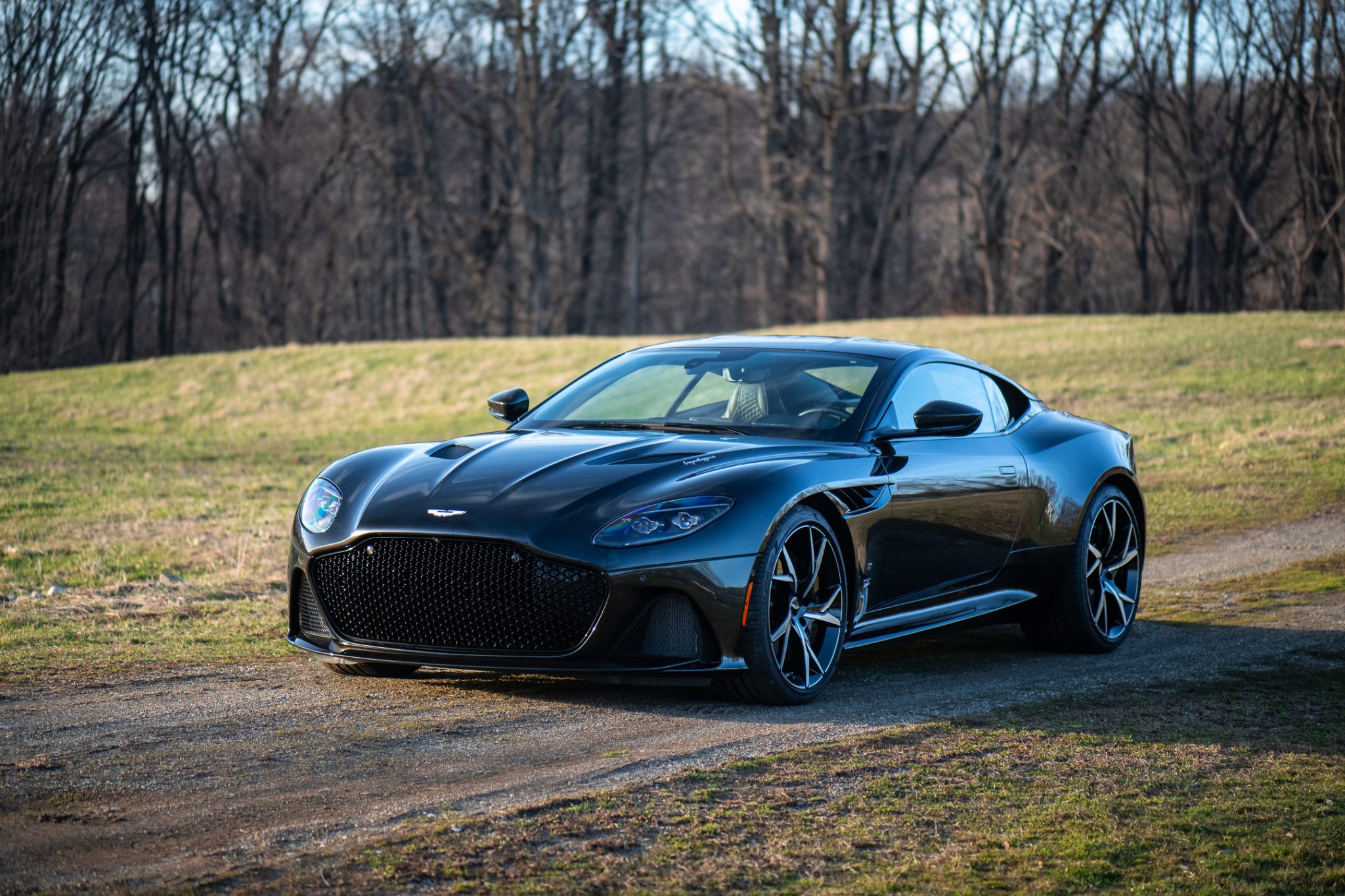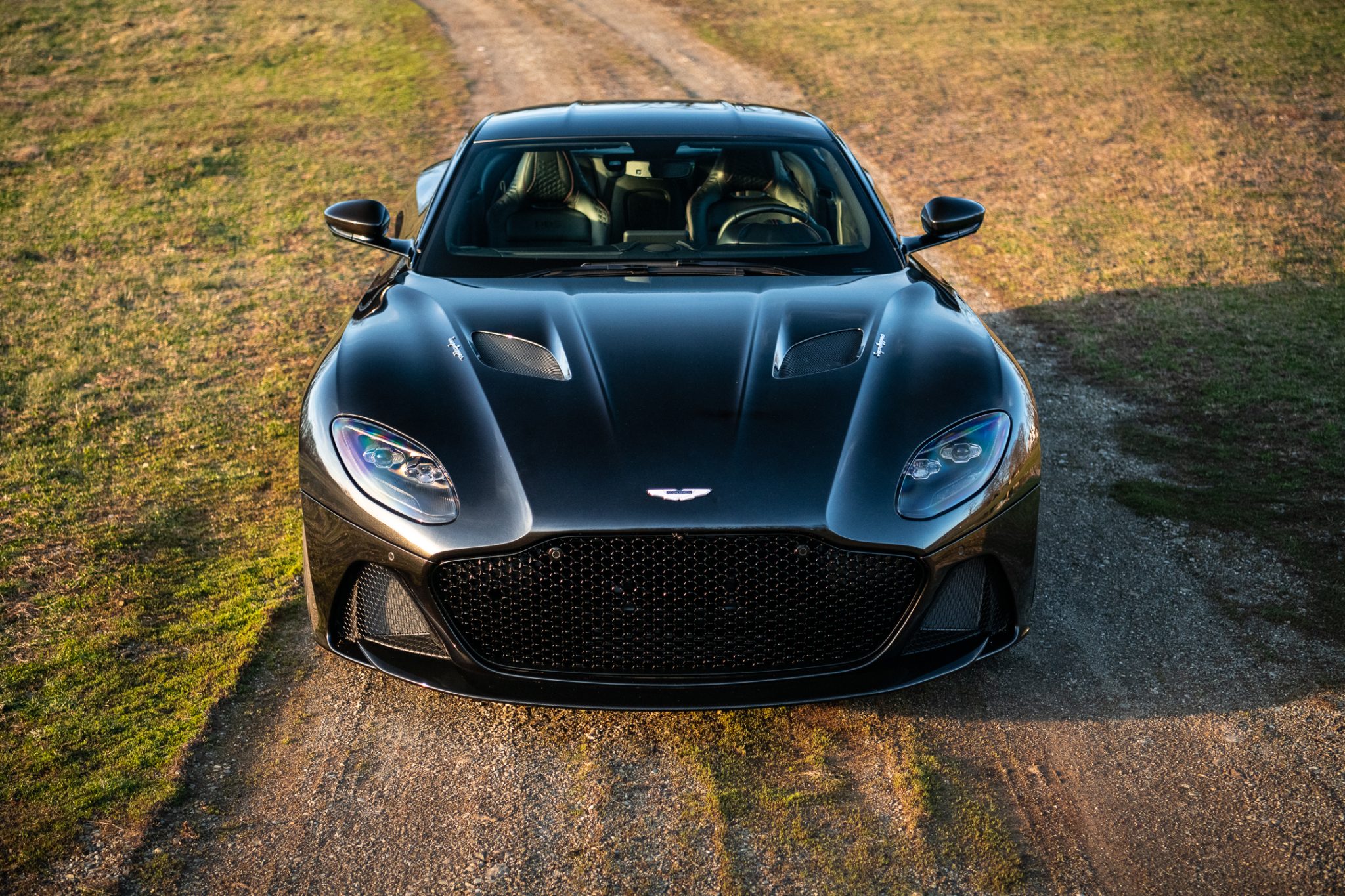 All 007 Edition DBS Superleggera examples were finished in Ceramic Grey with a black-tinted splitter, carbon-fiber roof panel, mirror caps, Aeroblade spoiler, and diffuser. Chrome 007 Edition badges are also affixed to the fenders. Additional equipment on this example includes LED headlights, Superleggera fender badges, fender vents, smoked taillights, and a 360-degree camera system with front and rear parking sensors.