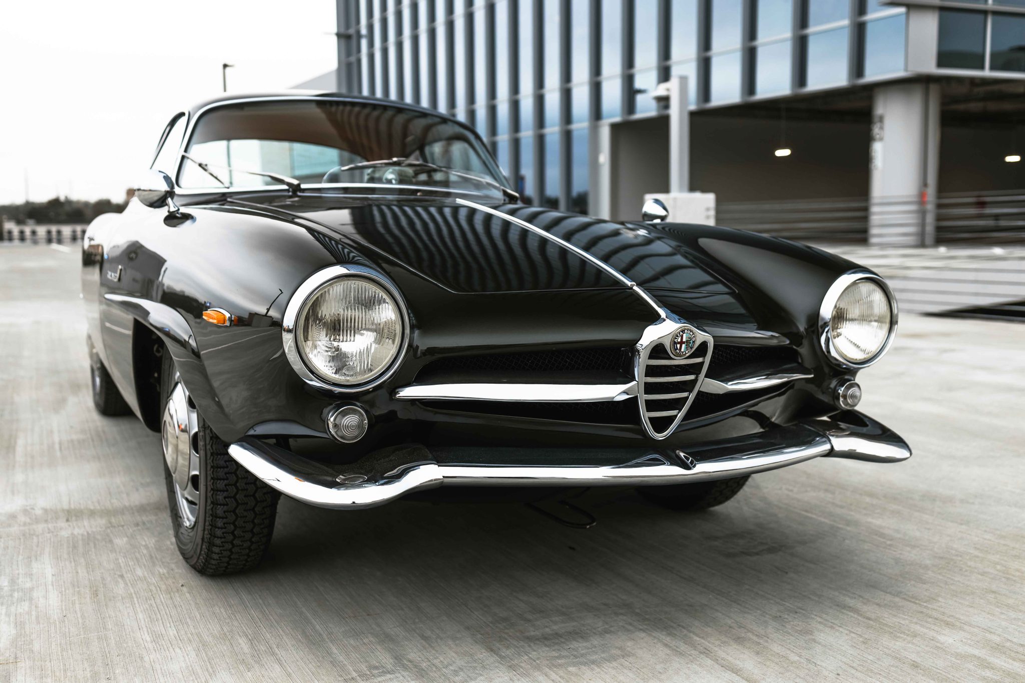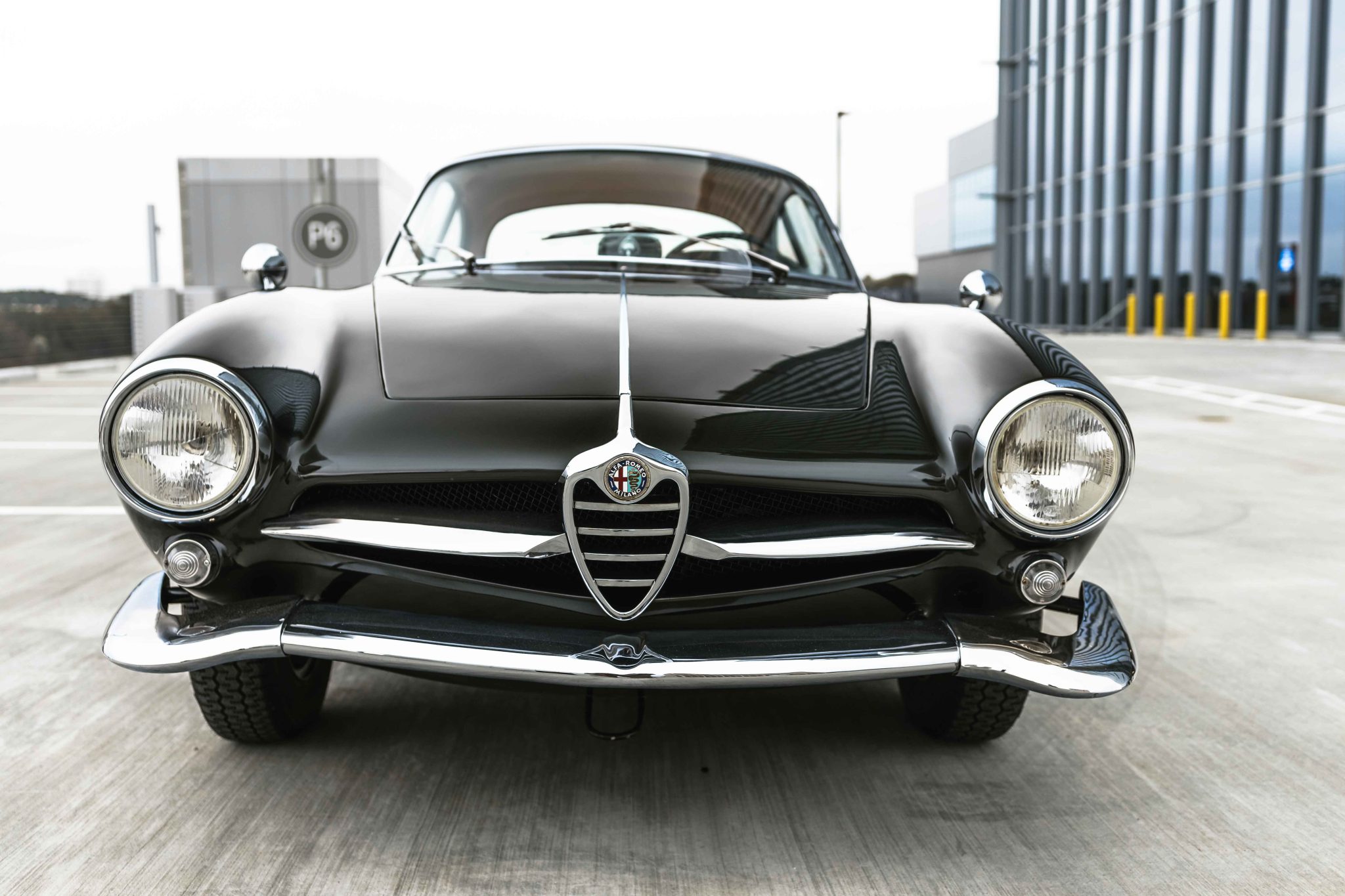 This example was originally finished in Musk Green according to information supplied by Centro Documentazione Alfa Romeo and was repainted in its current shade of Verde Scuro Metallizzato during the refurbishment carried out in the 2010s. Features include a transparent plastic air deflector mounted along the cowl, fender-mounted Talbot side mirrors, pocket-style door handles, and elliptical front side markers.