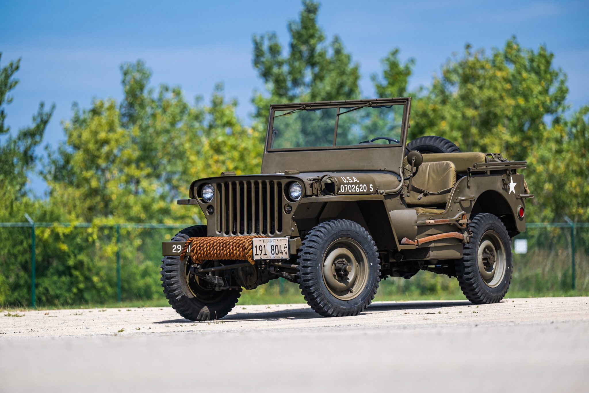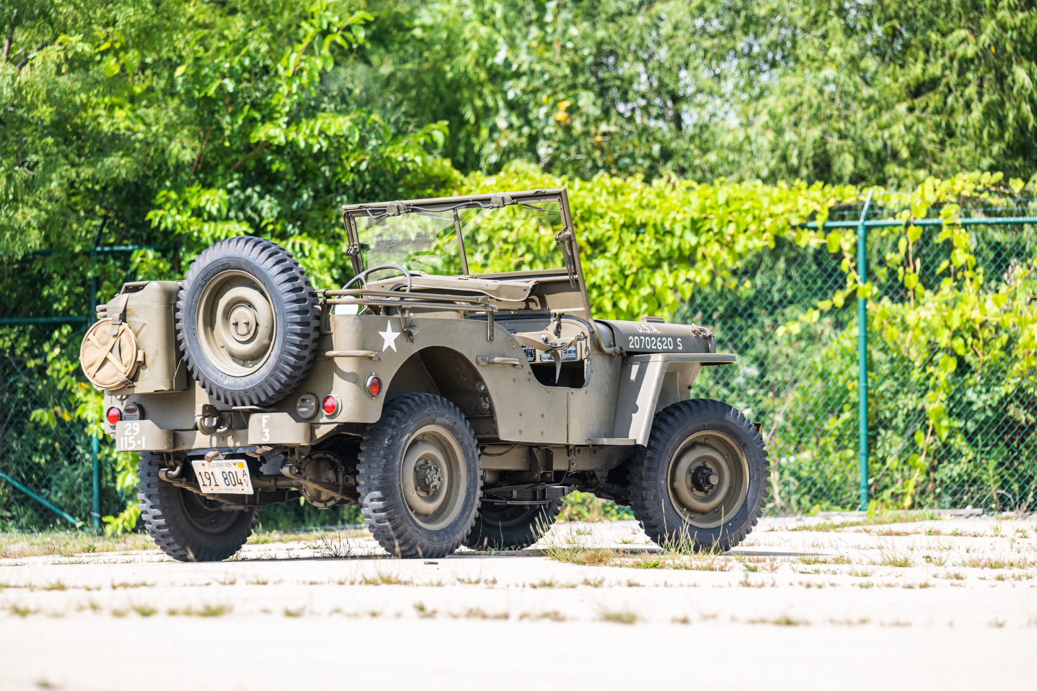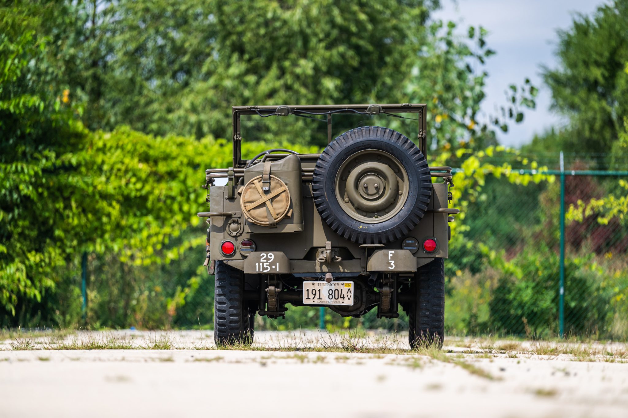 Body-color 16″ steel wheels are wrapped in 6.00-16LT McCreary military tires. A spare is mounted to the rear of the vehicle, and new tubes were fitted within all five tires in 2018. Stopping power is provided by four-wheel drum brakes, which were overhauled in 2012. A brake fluid flush was performed in 2019.
