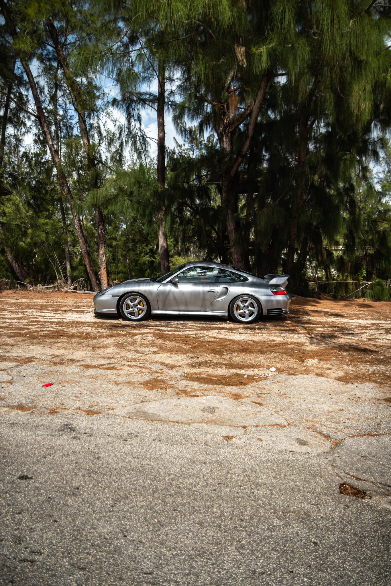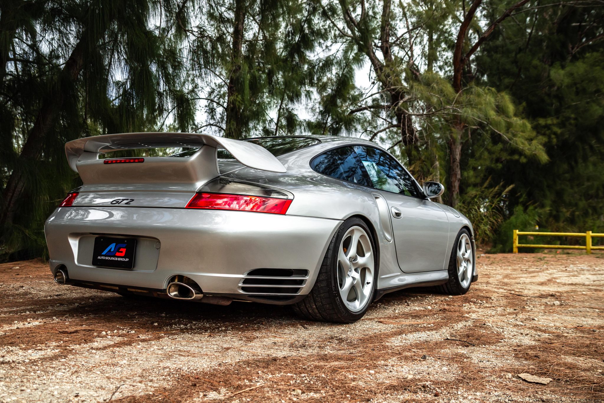 Staggered-width 18″ wheels feature Porsche crest center caps and wear 235/40 front and 315/30 rear Michelin Pilot Sport N4 tires. The GT2 weighed approximately 220 pounds less than the contemporary Turbo and was equipped with adjustable suspension components as well as stiffer springs and stabilizer bars. Porsche Stability Management was not available. Stopping power is provided by yellow-finished calipers over slotted front and cross-drilled rear steel rotors, and the brake pads and rotors were replaced in June 2020.